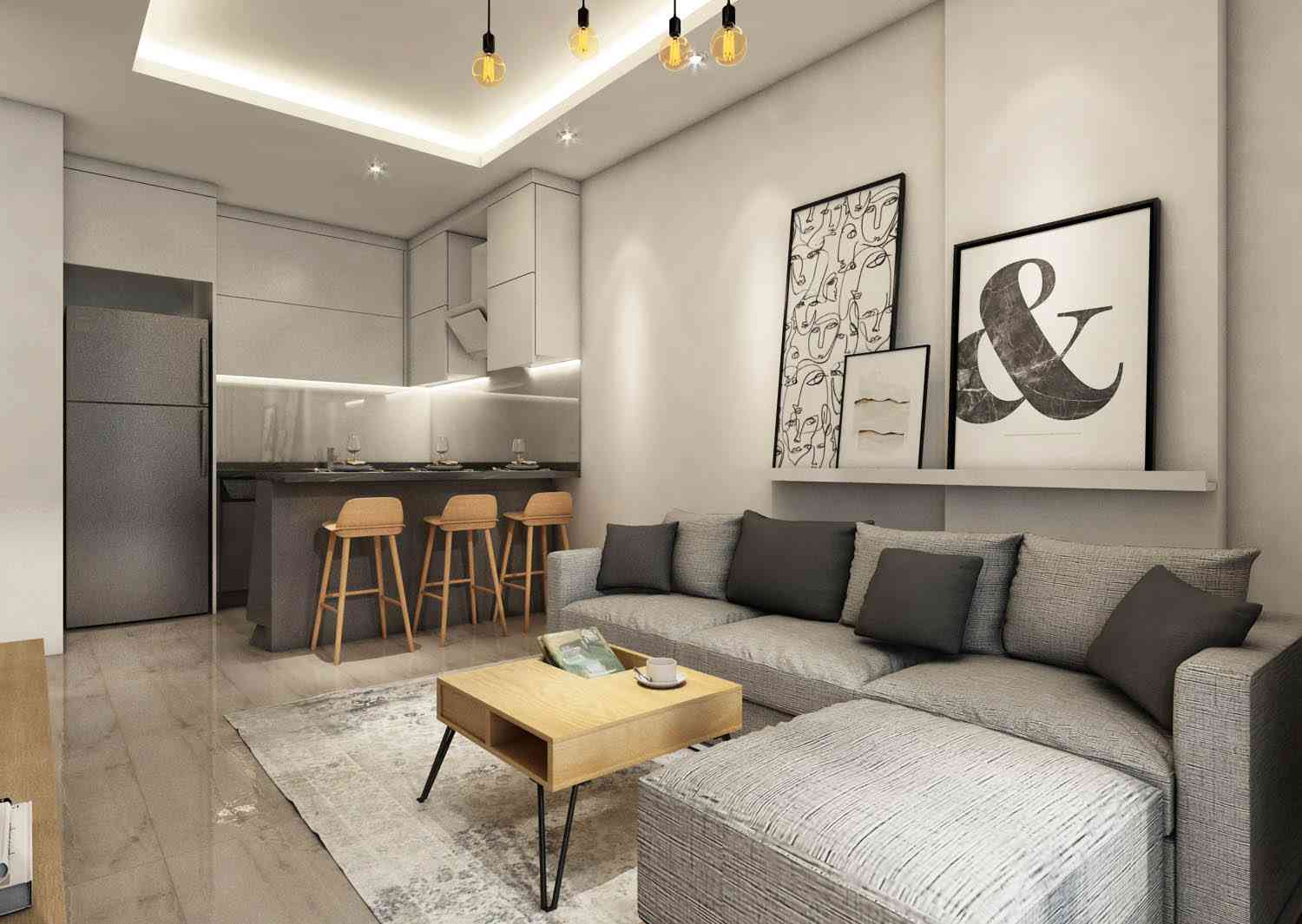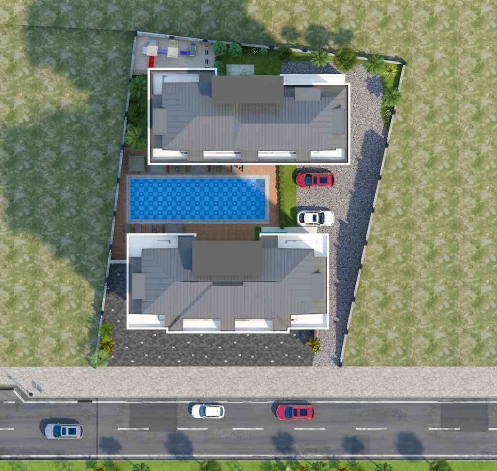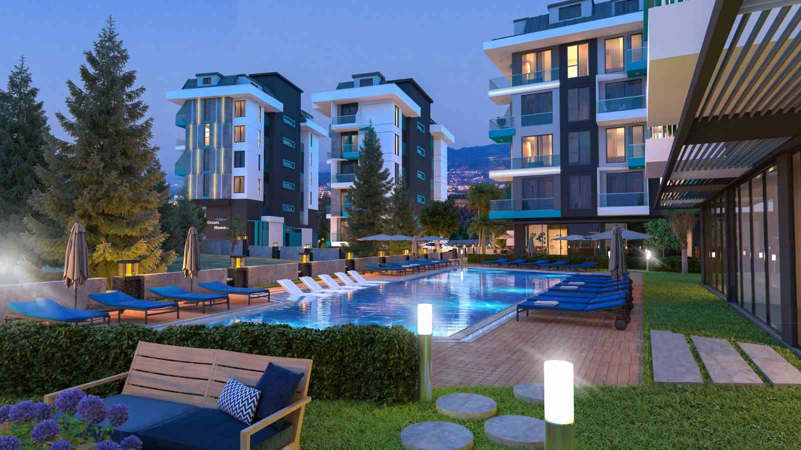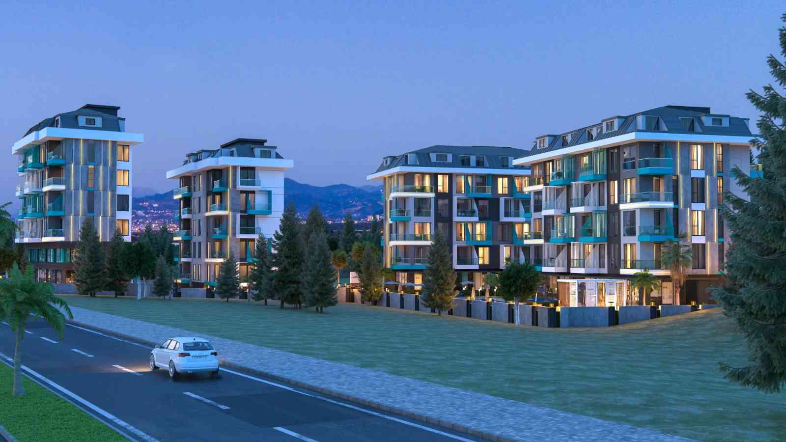 Unser Komplex besteht aus zwei Wohnblöcken mit großen Fenstern und Balkonen und bietet aus jedem Blickwinkel eine atemberaubende Aussicht. Das gesamte Anwesen ist wunderschön mit üppigem Gras und dekorativen Bäumen dekoriert und schafft eine ruhige und entspannende Umgebung.