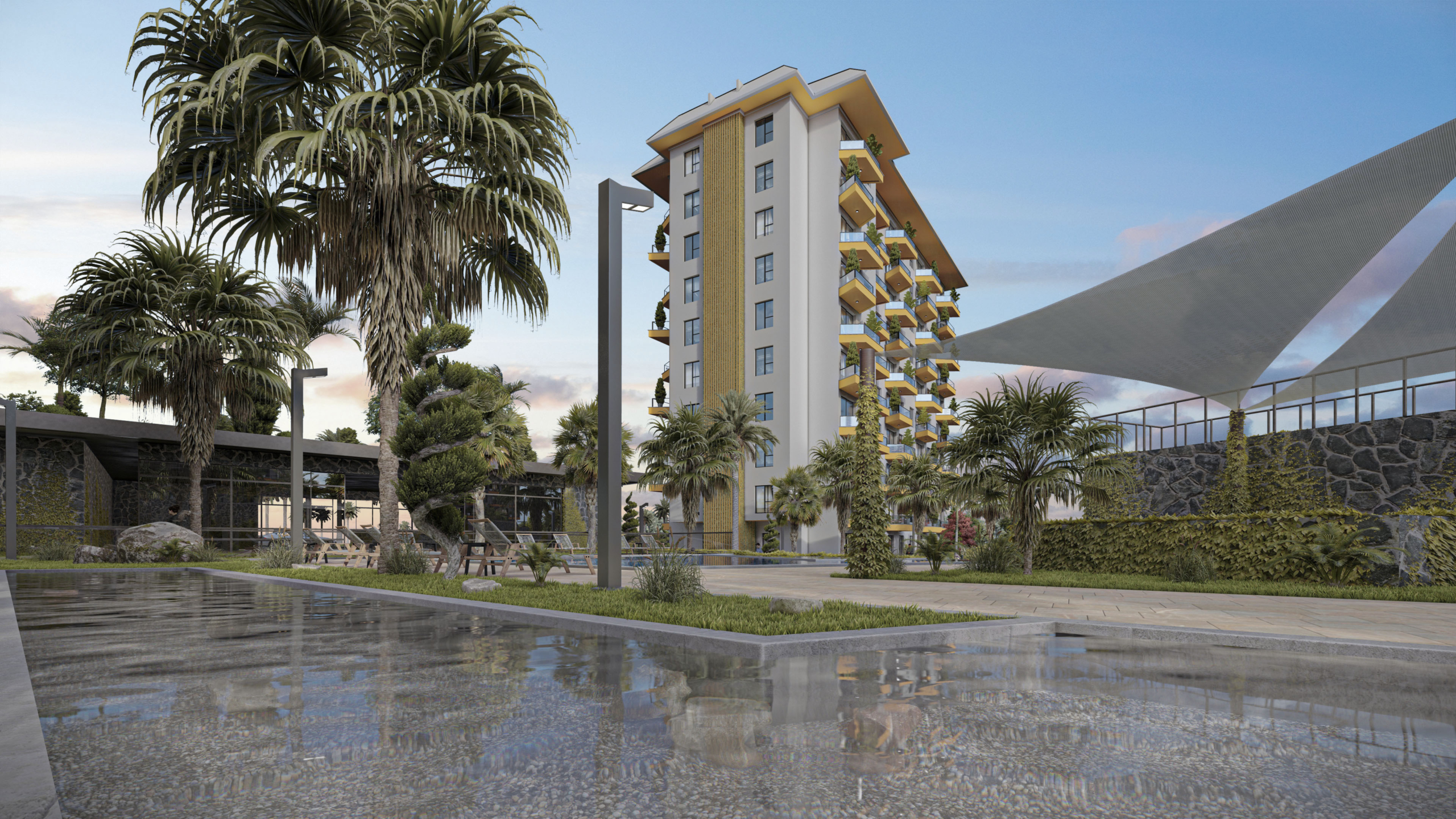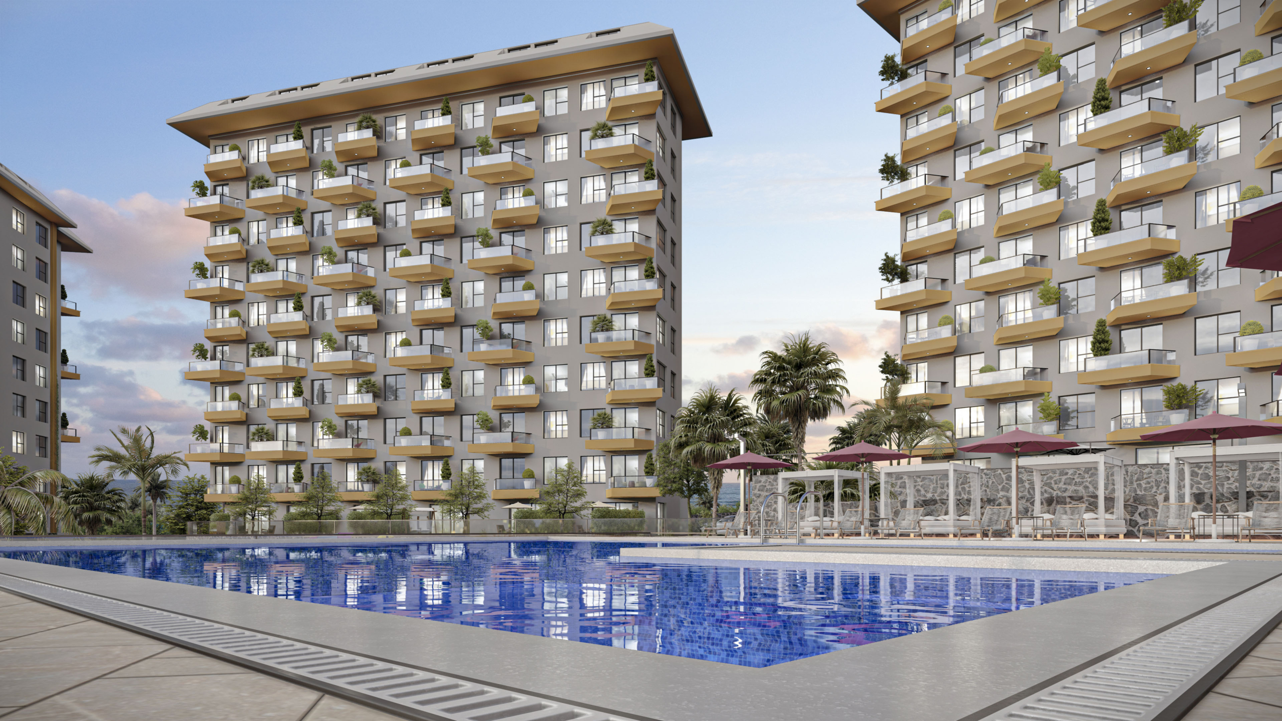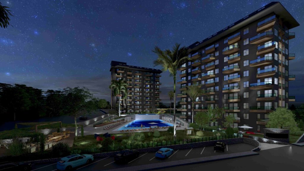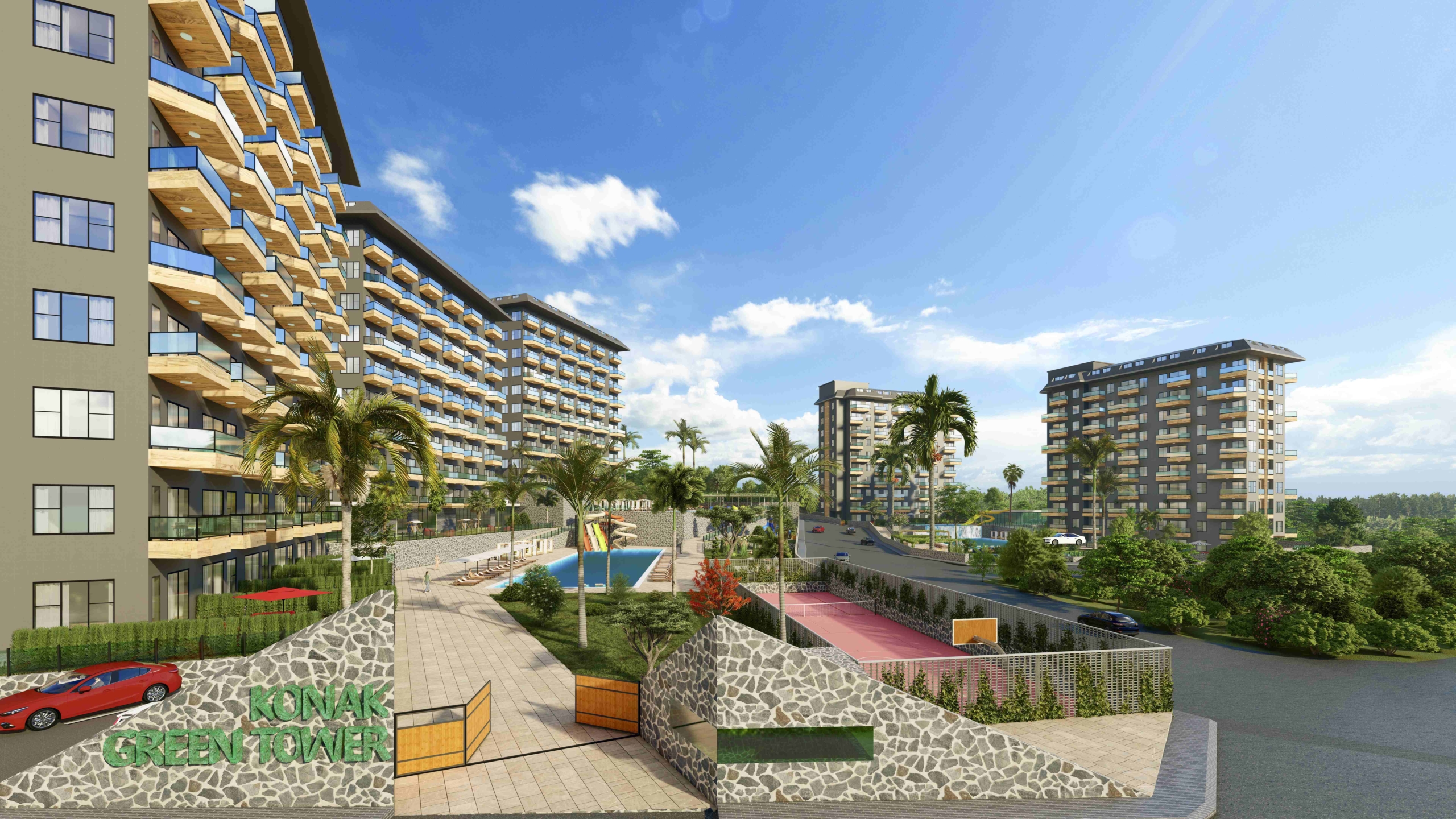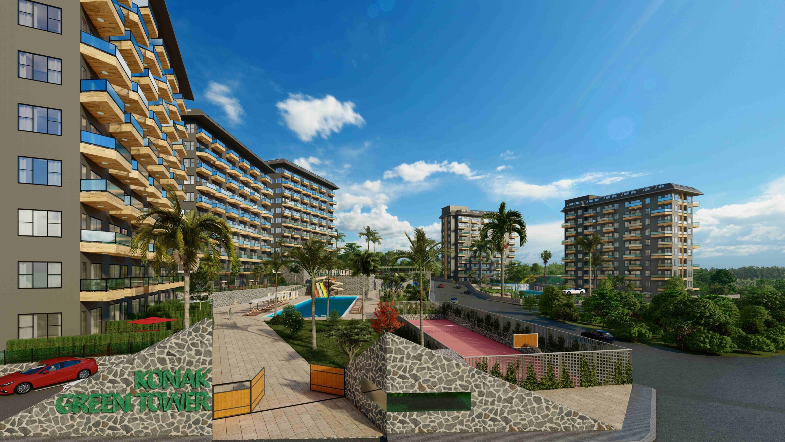 Located just 1 km from the sea and 23 km from the center of Alanya, Konak Green Towers is easily accessible from Gazipasa Airport (65 km) and Antalya Airport (100 km). With construction starting on September 1, 2021, and set to be completed by December 31, 2024, now is the perfect time to invest in your dream home.