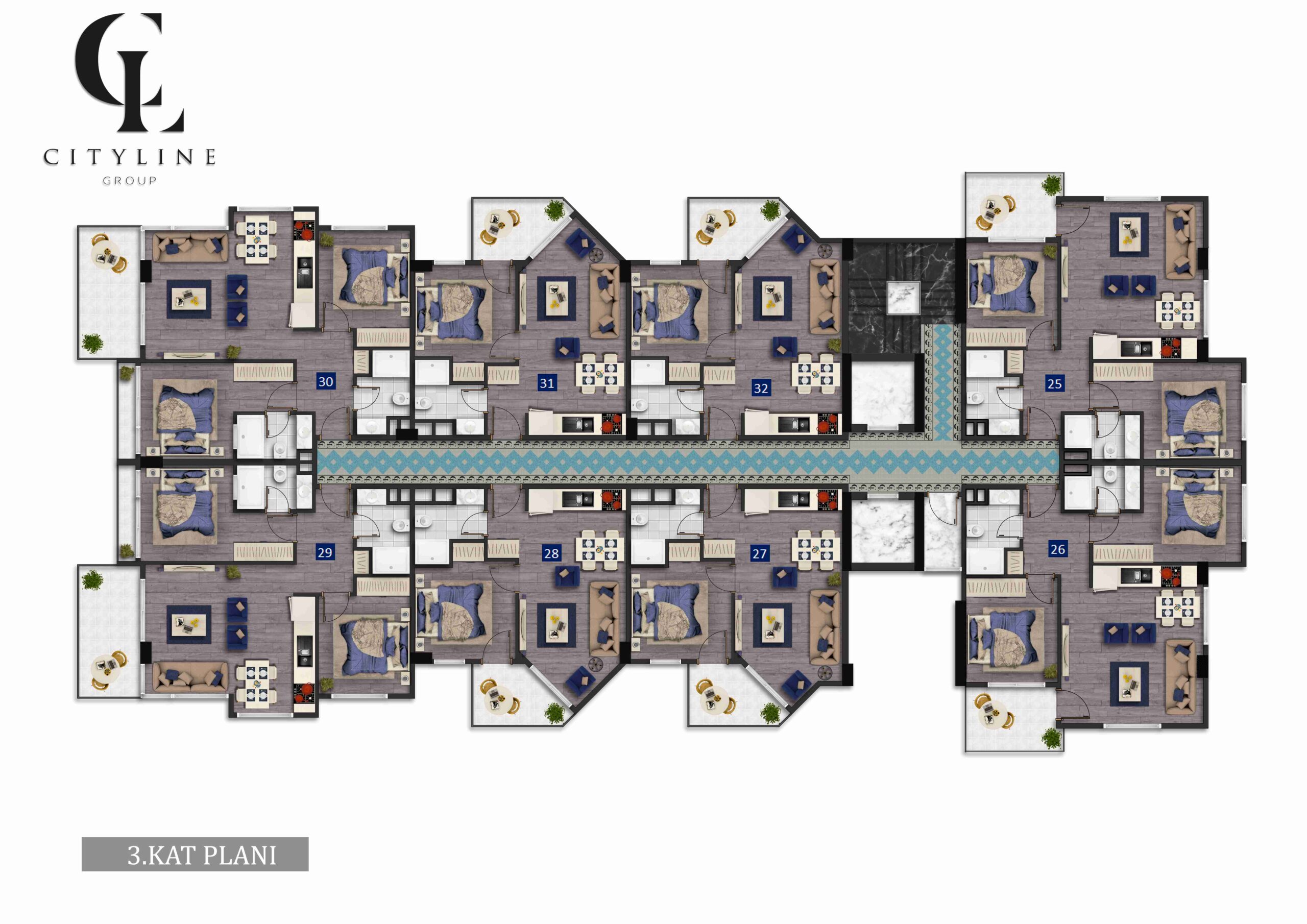 All of them have sea view. With its own underpass opening to the sea and beach club privilege, it is far ahead of its examples in the region and will provide you with confidence and comfort to enjoy the Mediterranean Sea. The project, where personalised concierge services will be provided, offers a privileged life to its users with 24-hour reception, home service and assistance services.