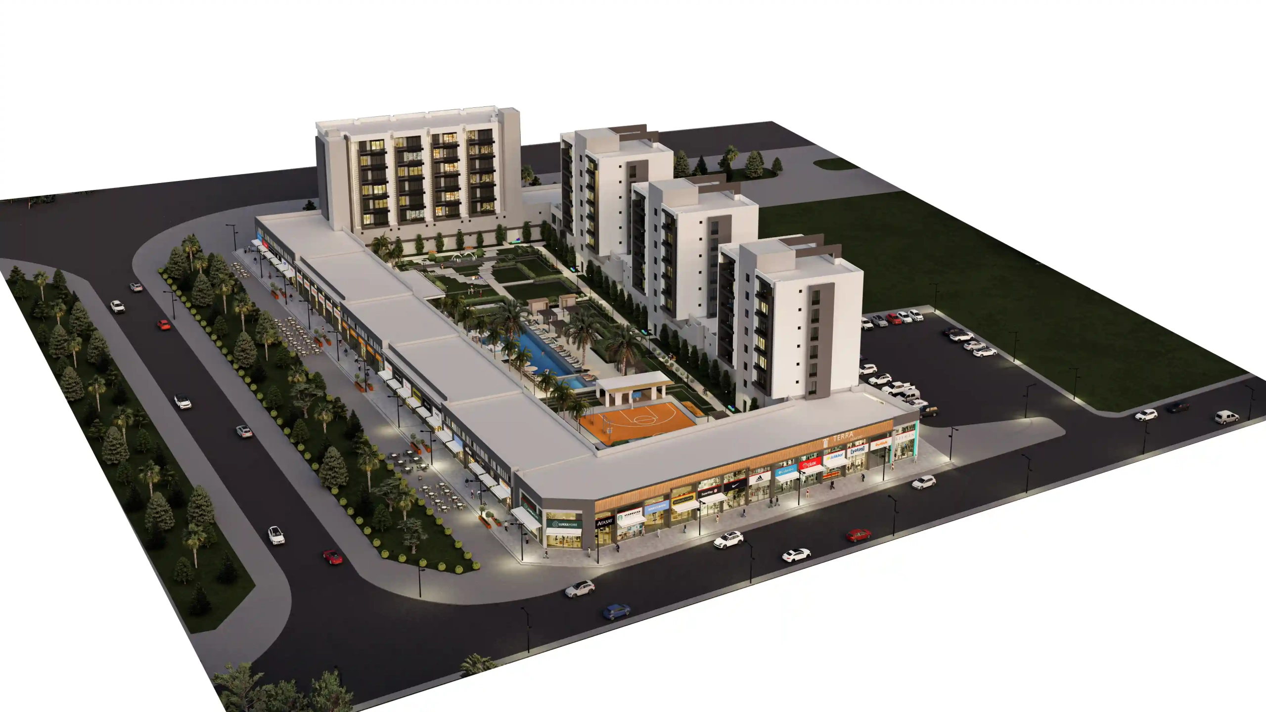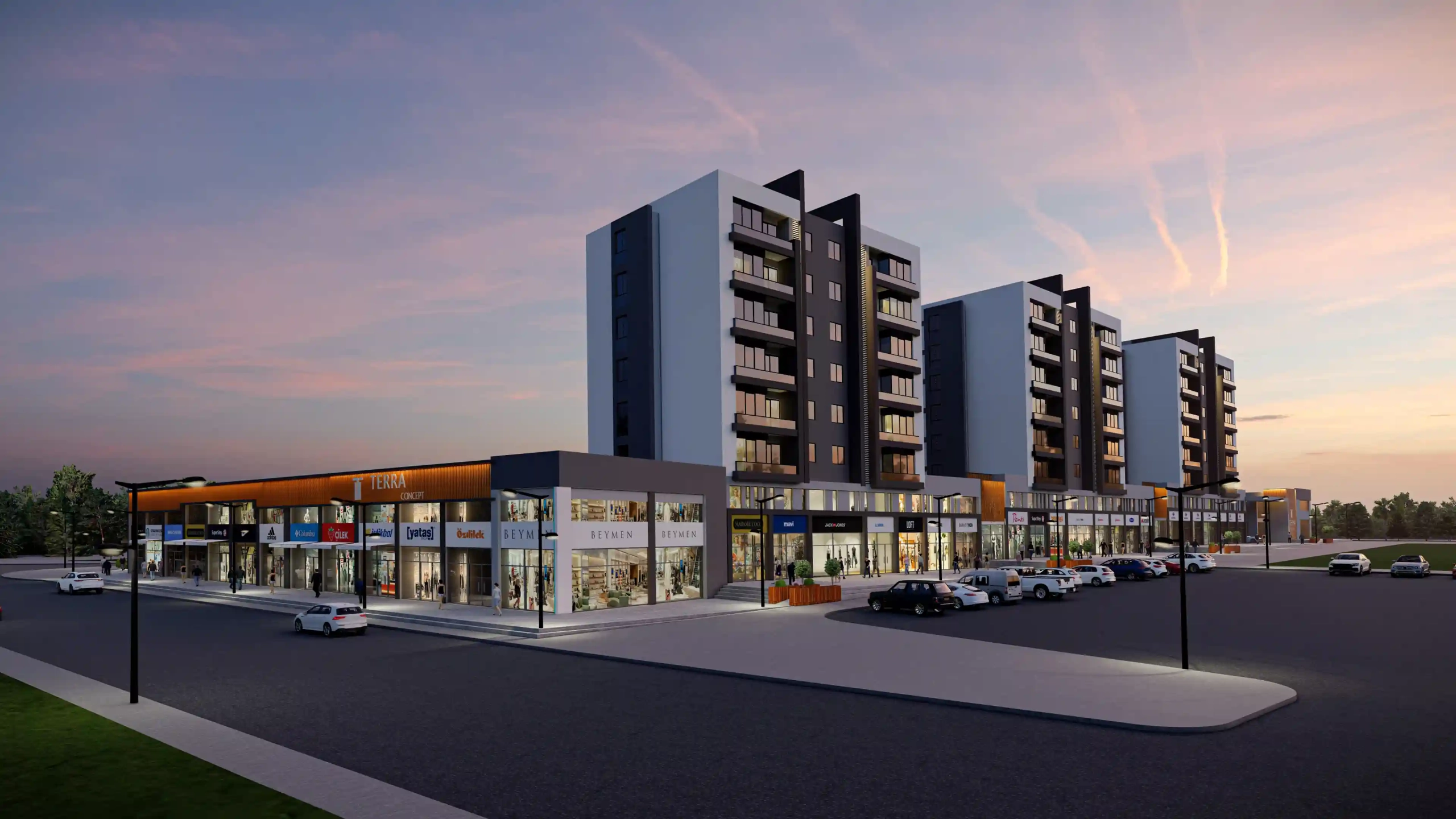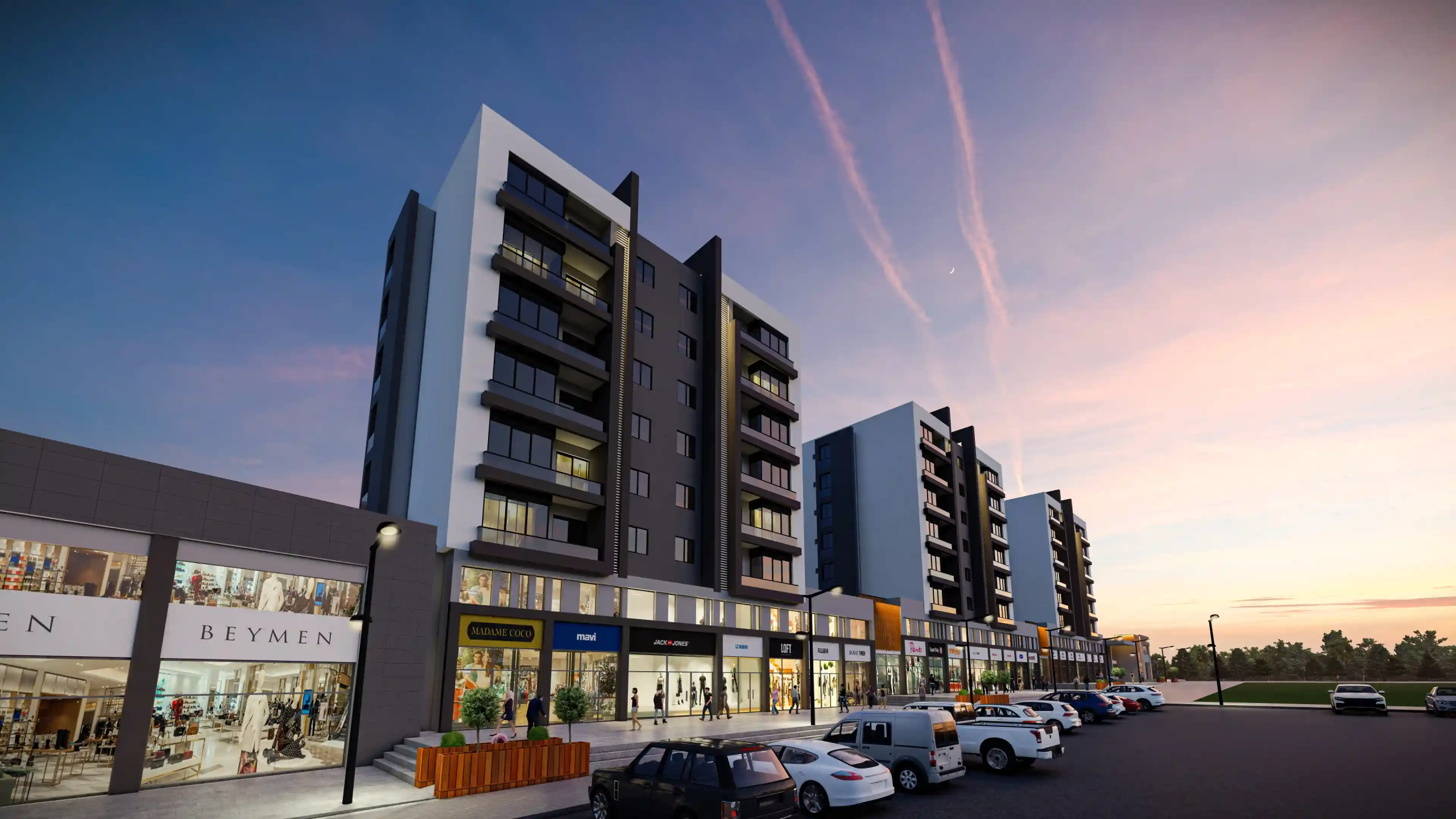 Our project includes 72 two-bedroom apartments (2+1), 54 one-bedroom apartments (1+1), and 81 commercial units. The commercial areas are designed in a street-shop concept, significantly contributing to the economic vitality of the region. Whether you’re looking for a place to live or an investment opportunity, these apartments for sale in Antalya stand out as an exceptional choice.