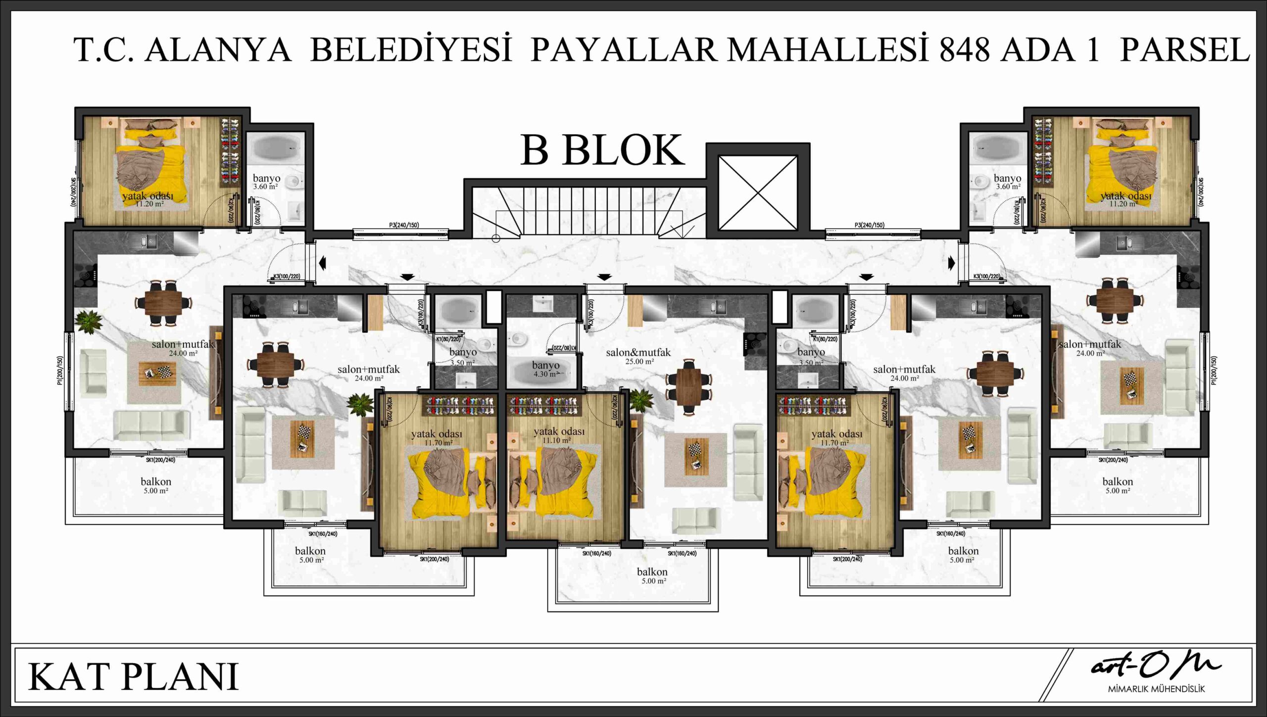Welcome to our brand new apartments located in the prestigious Payallar neighborhood. With an area of 2,200 sqm, our 4-story building offers spacious and modern 1+1 and 2+1 apartments with stunning sea views. The construction starts on 30.05.2023 and will be completed by 30.05.2024.