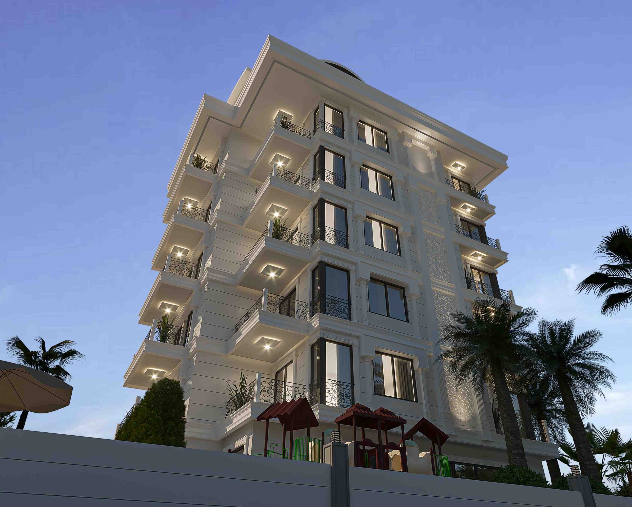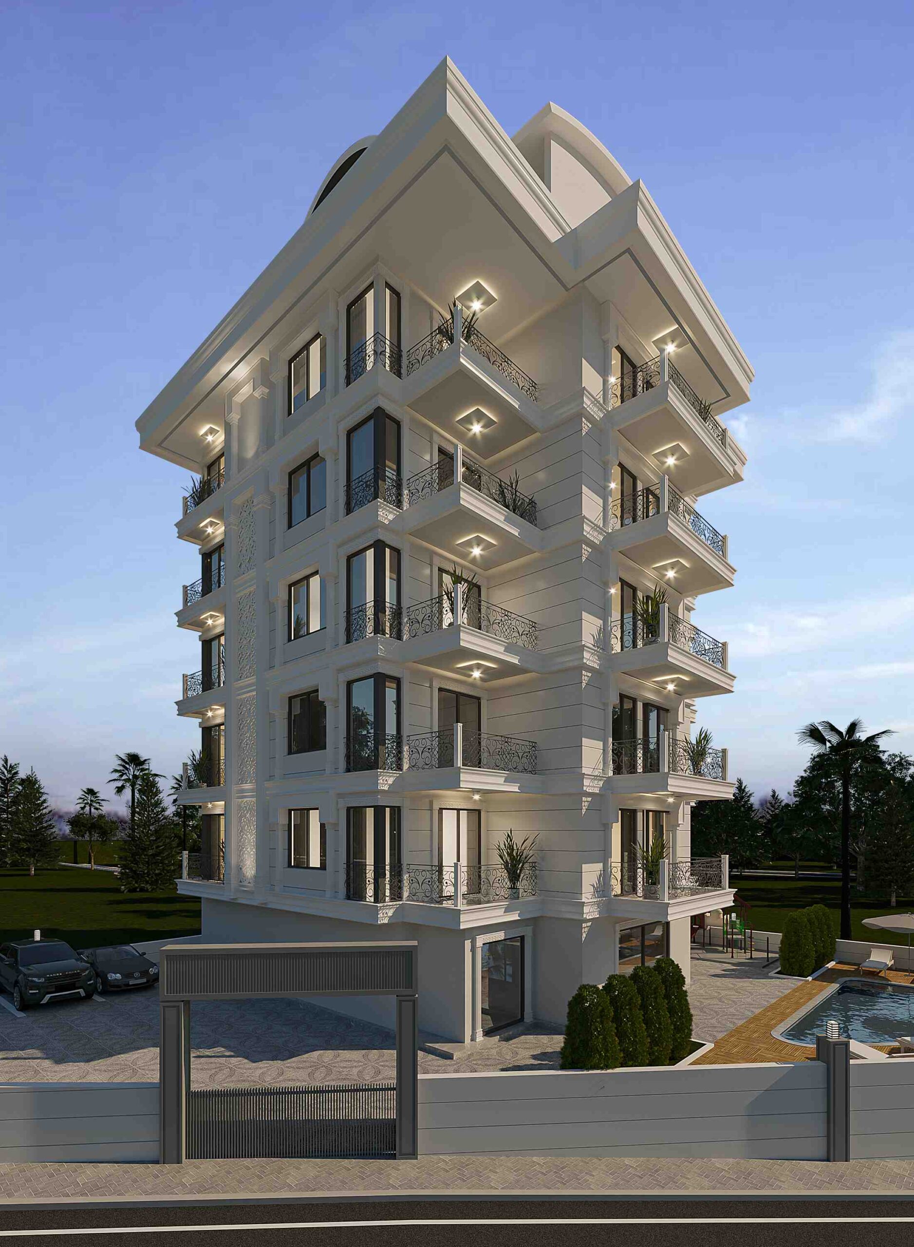 The entire infrastructure of the project has been developed and designed to provide a respectable standard of living for the residents. For this purpose, the complex will have a children’s pool, swimming pool, children’s playground, car park, sauna, fitness room, barbecue area and recreation area.