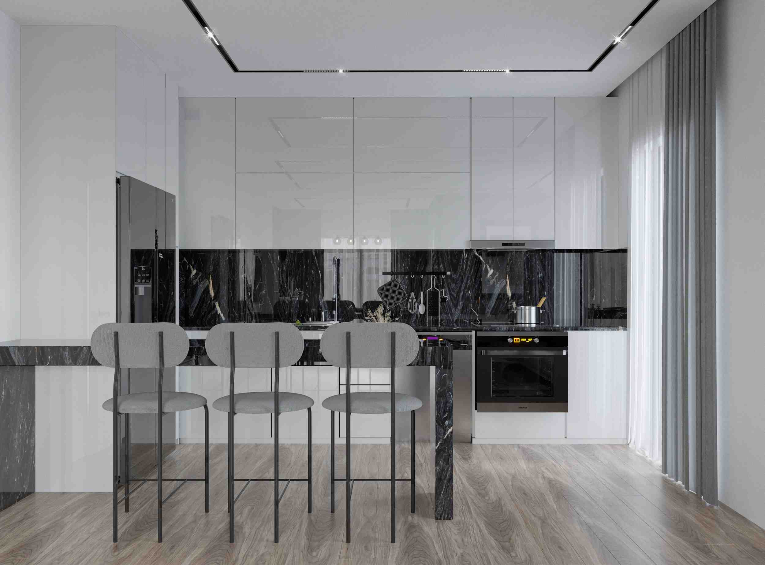 Indulge in the pleasure of modern kitchen design, equipped with natural gas appliances (Siemens), a shower cabin, and a wardrobe in the bathrooms. Enjoy the convenience of inverter air conditioners (Mitsubishi) in each room. Your safety is our priority, with 24/7 security and a camera system. Dublex apartments offer the added luxury of a walk-in closet.