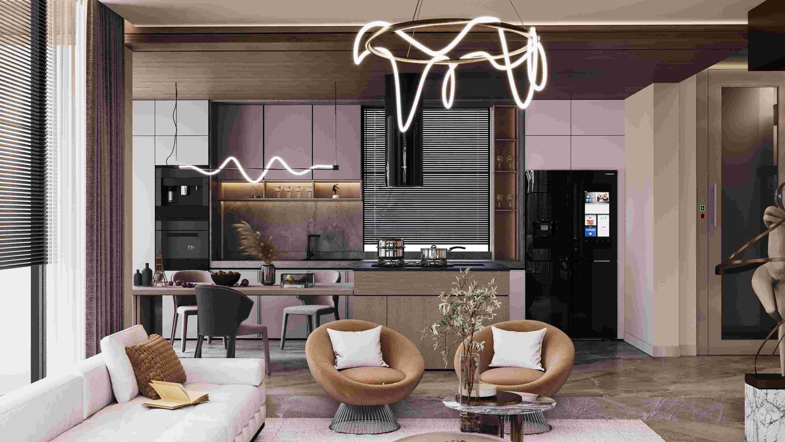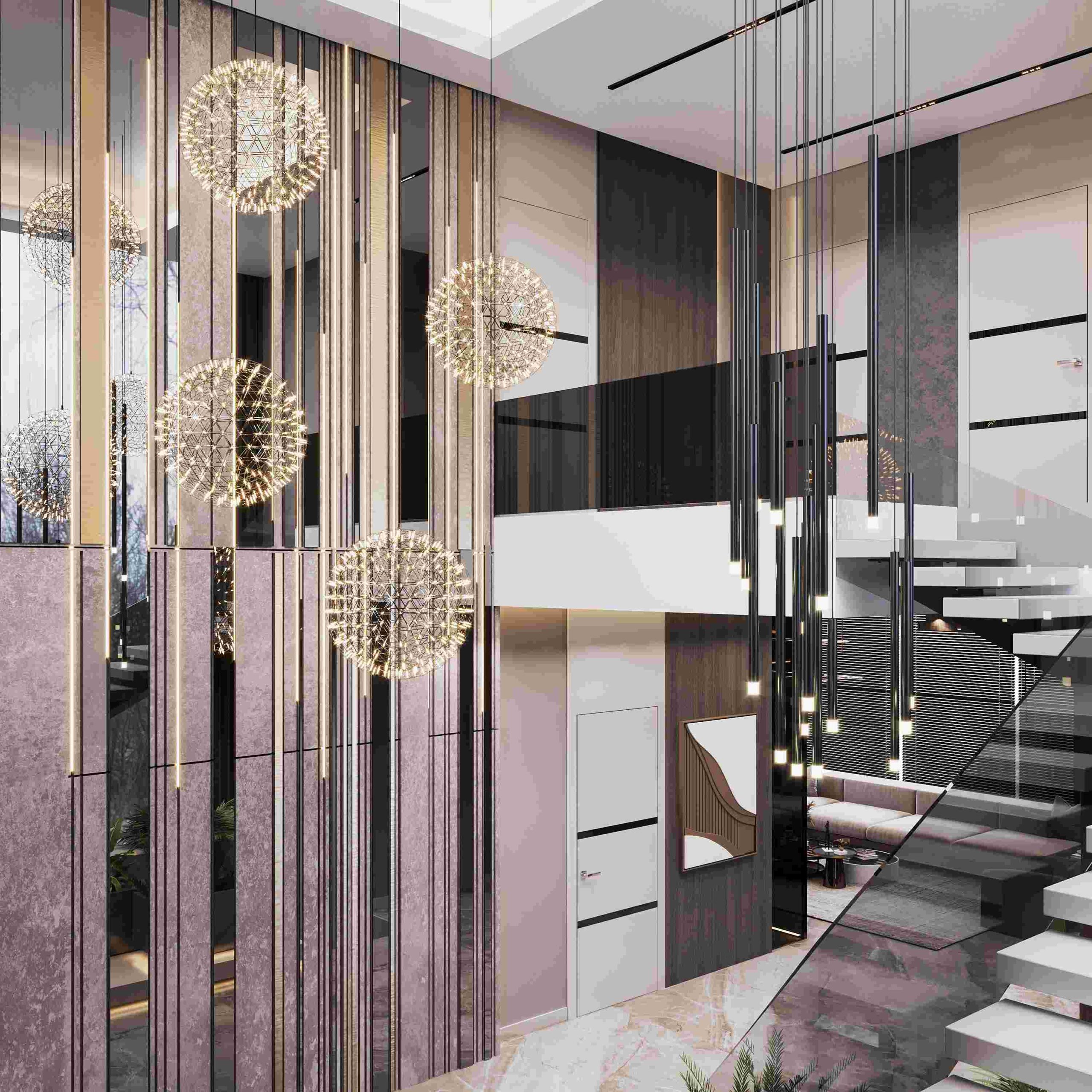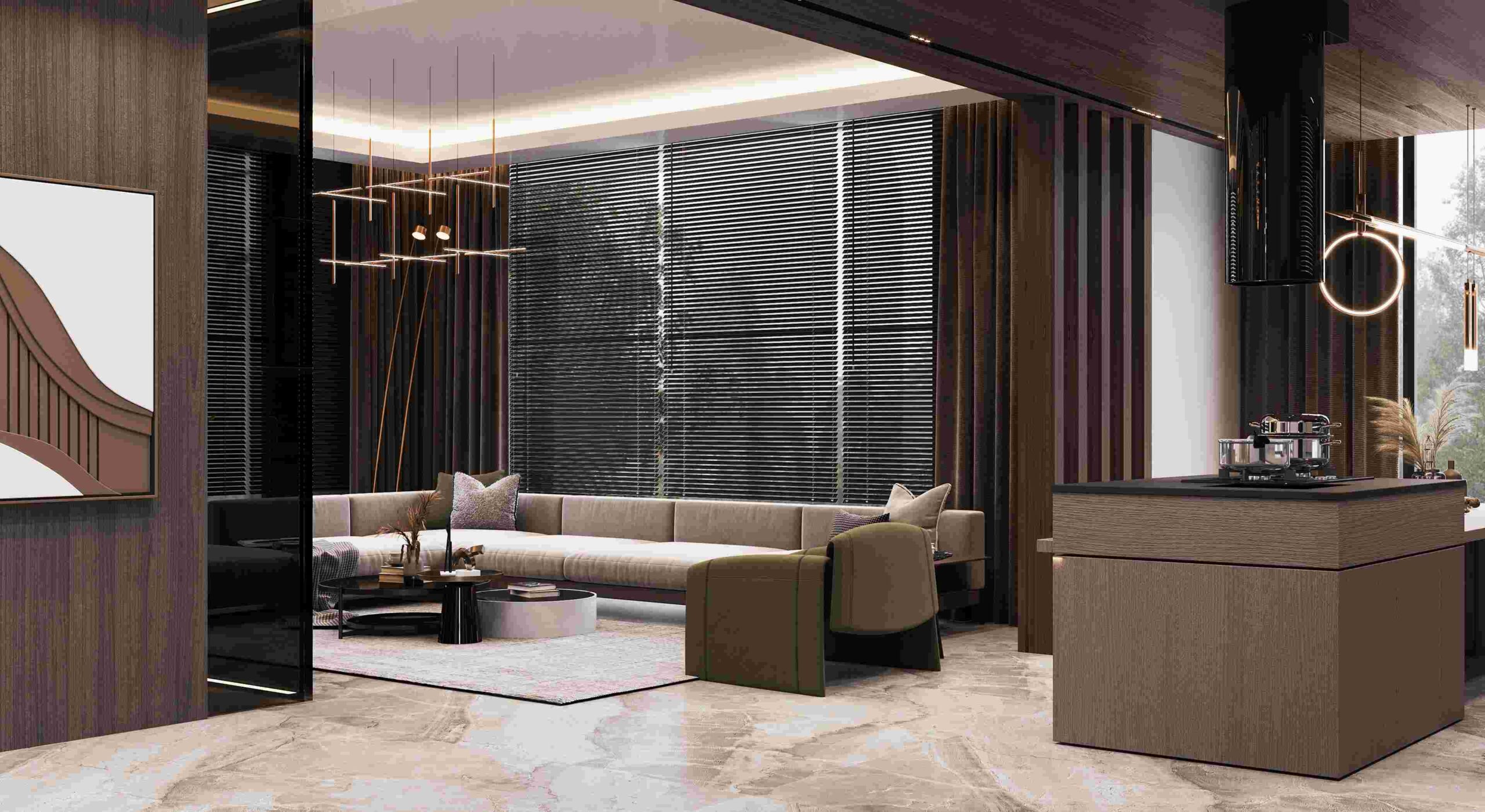 Inside, the villas are unique and comfortable, with underfloor heating, air conditioning, and modern appliances. The living spaces are spacious and elegant, with combined kitchens and living rooms, master bedrooms, and bathrooms.