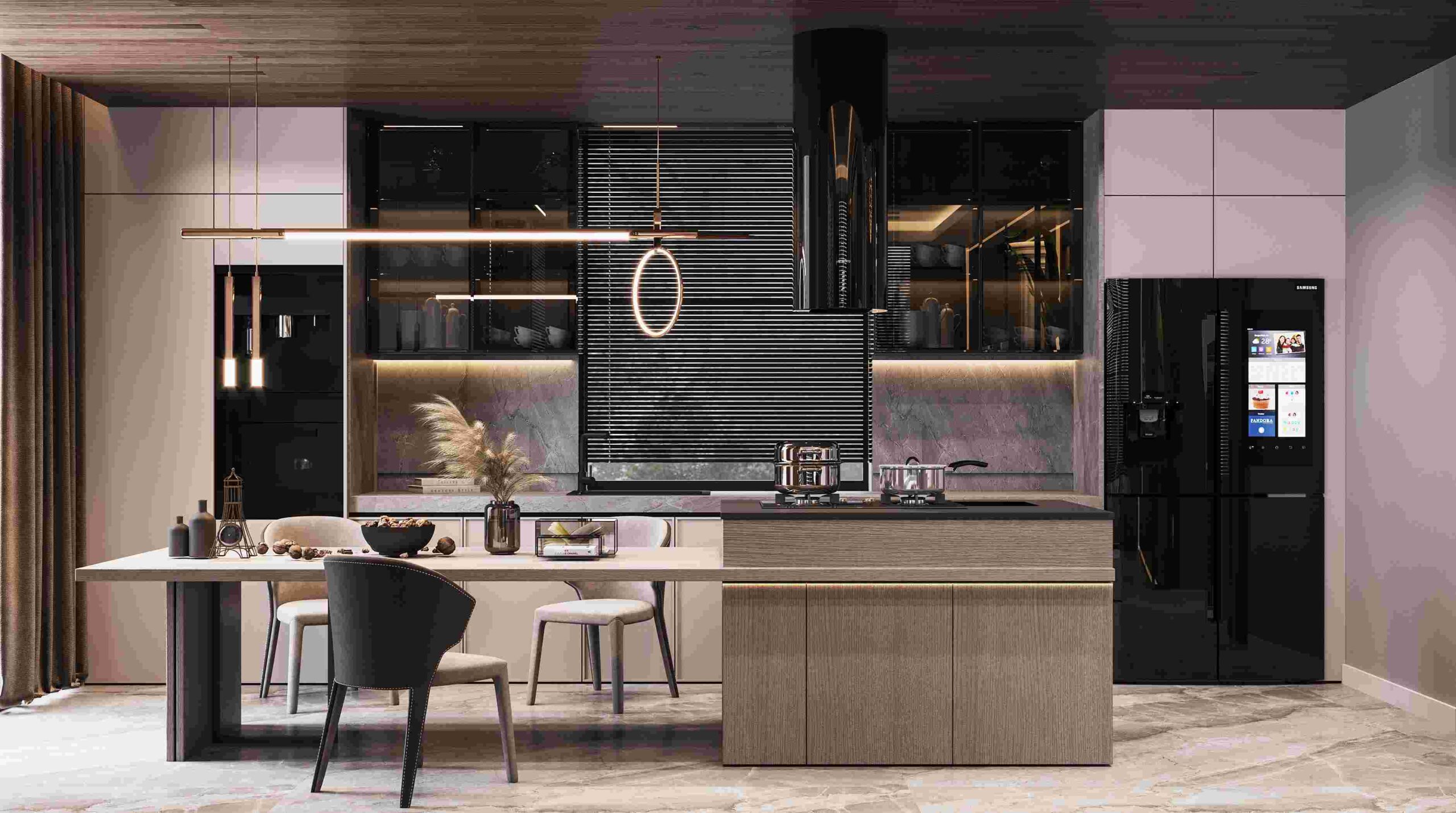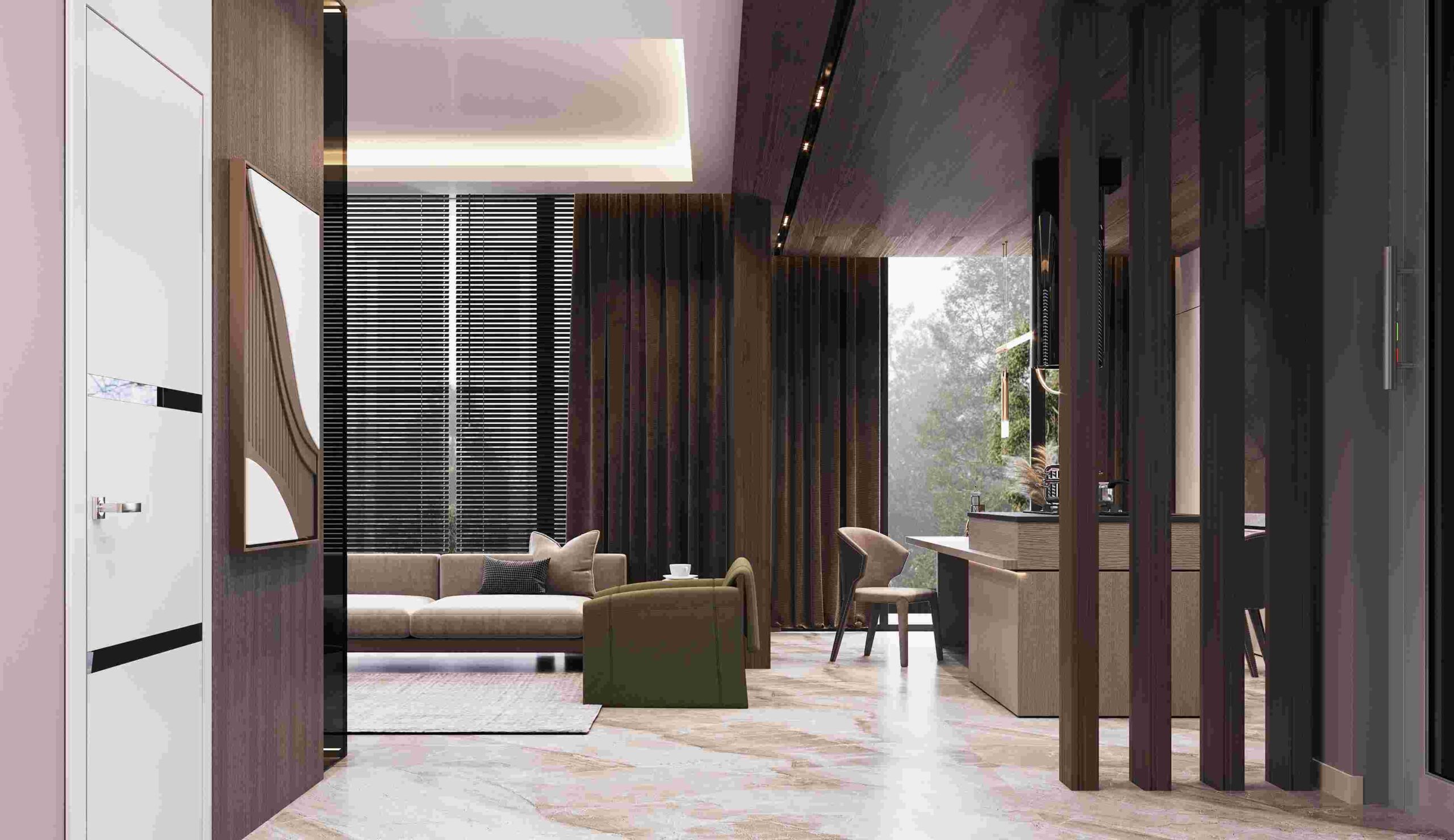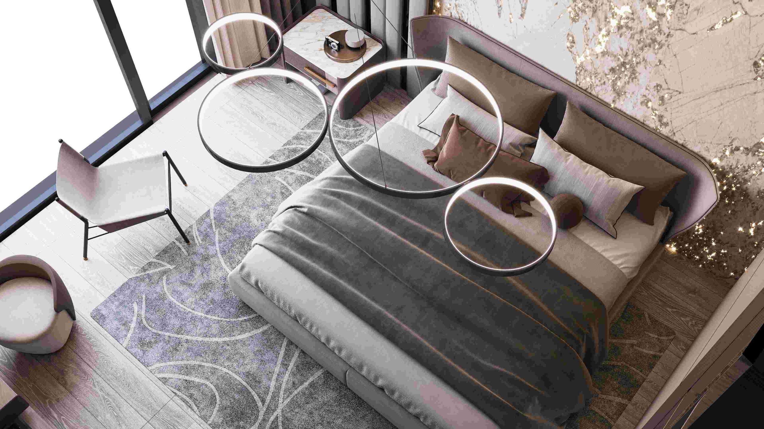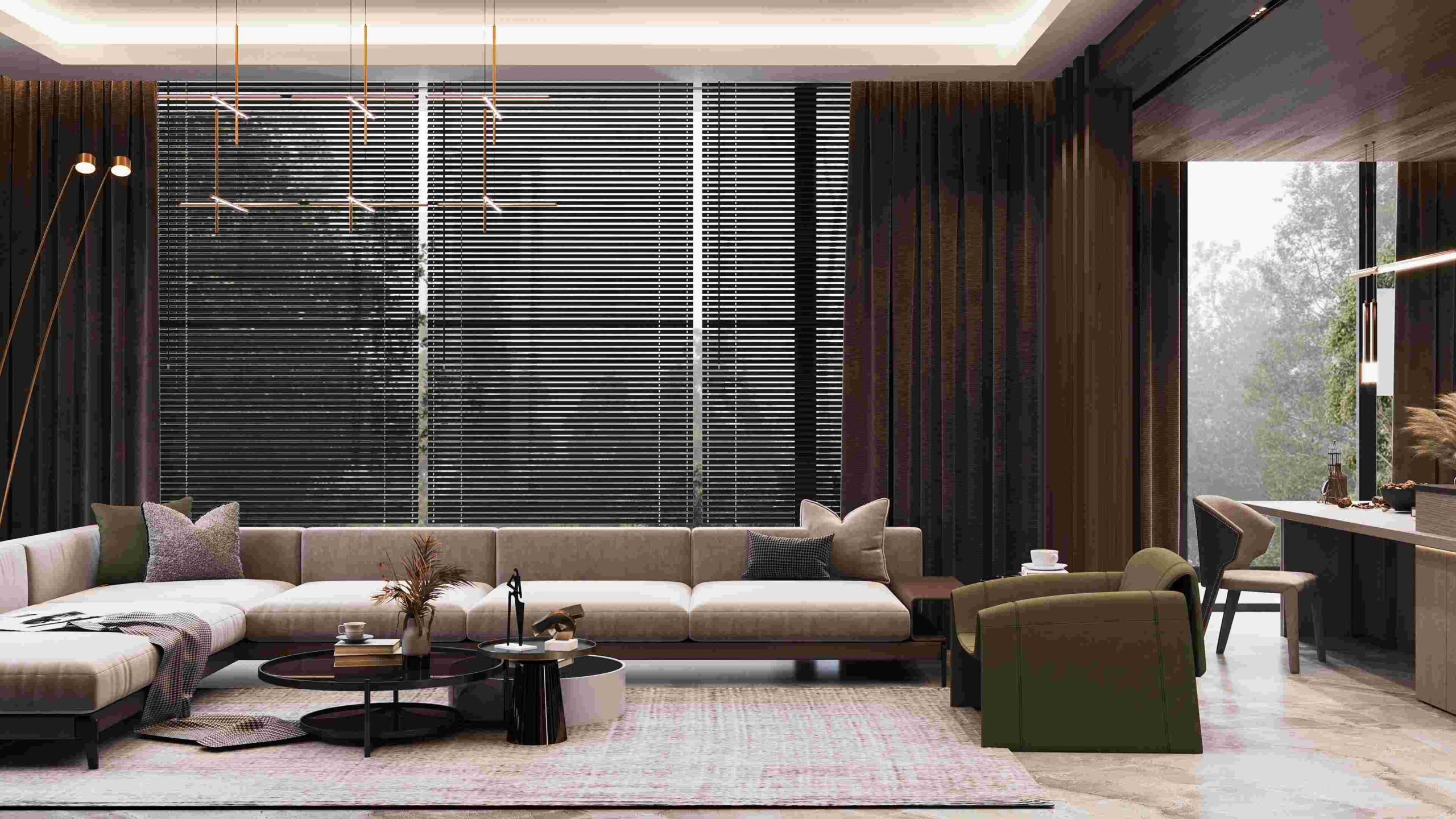 Inside, the villas are unique and comfortable, with underfloor heating, air conditioning, and modern appliances. The living spaces are spacious and elegant, with combined kitchens and living rooms, master bedrooms, and bathrooms.