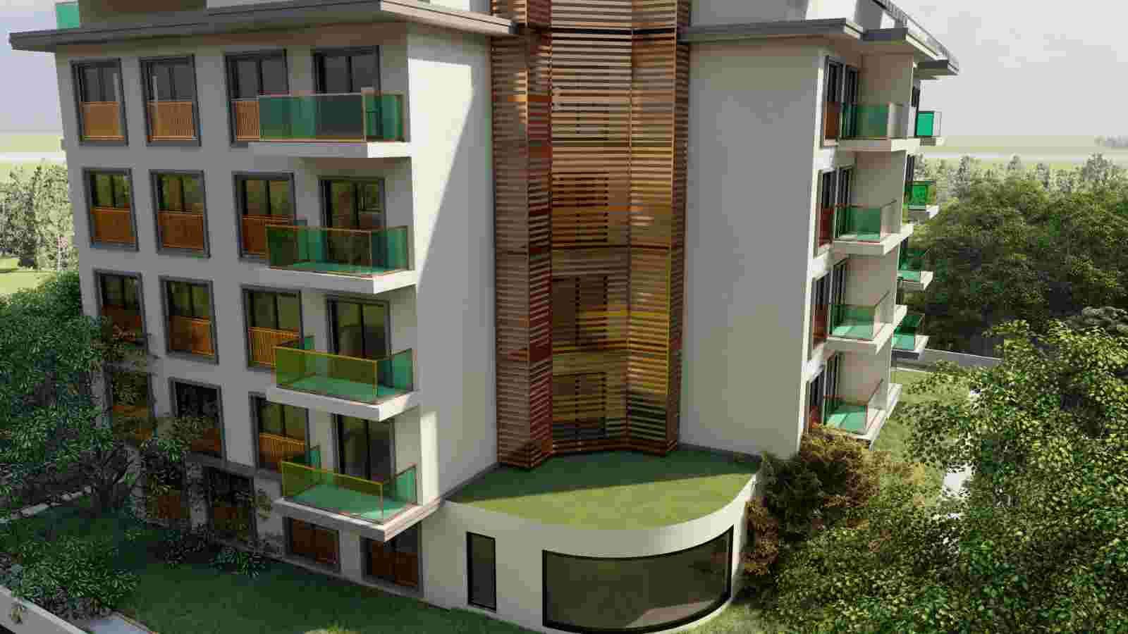 The project consists of a block with 5 floors and a penthouse for a total of 36 apartments. There is also a closed zone with multifunctional infrastructure. The floor plans are 2+1 garden duplexes of 112-155 m2 and 2+1 penthouse duplexes of 112-122 m2. All apartments feature high quality finishes, fitted kitchen furniture and full bathrooms.
