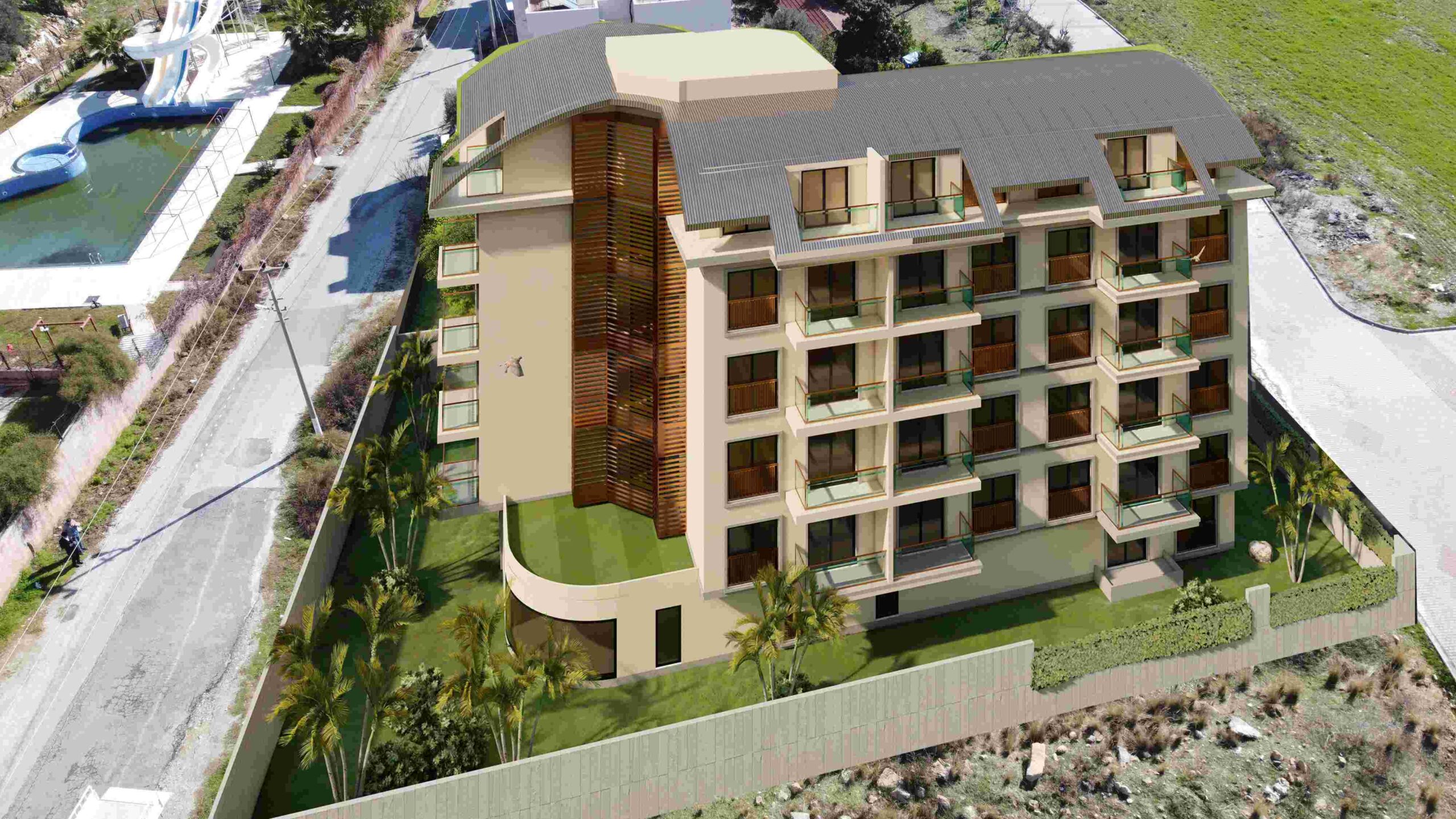 The complex will be located in a beautiful green area without noisy roads and many tourists, 2 km from the Mediterranean coast. A very nice, safe and peaceful place.
