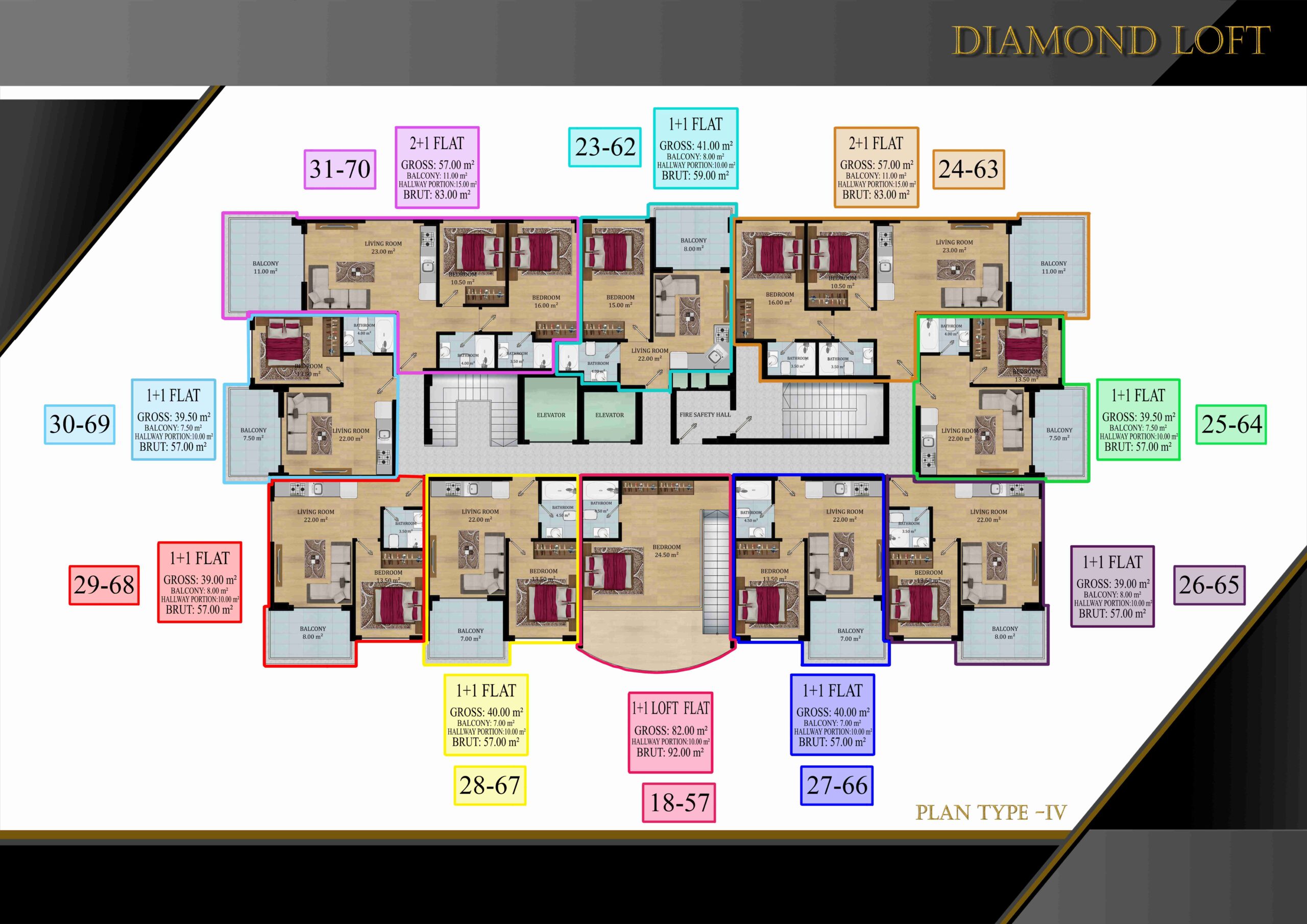 3+1 Duplex, 8th floor, North East Facade Dublex 232.000€  3 178 m²