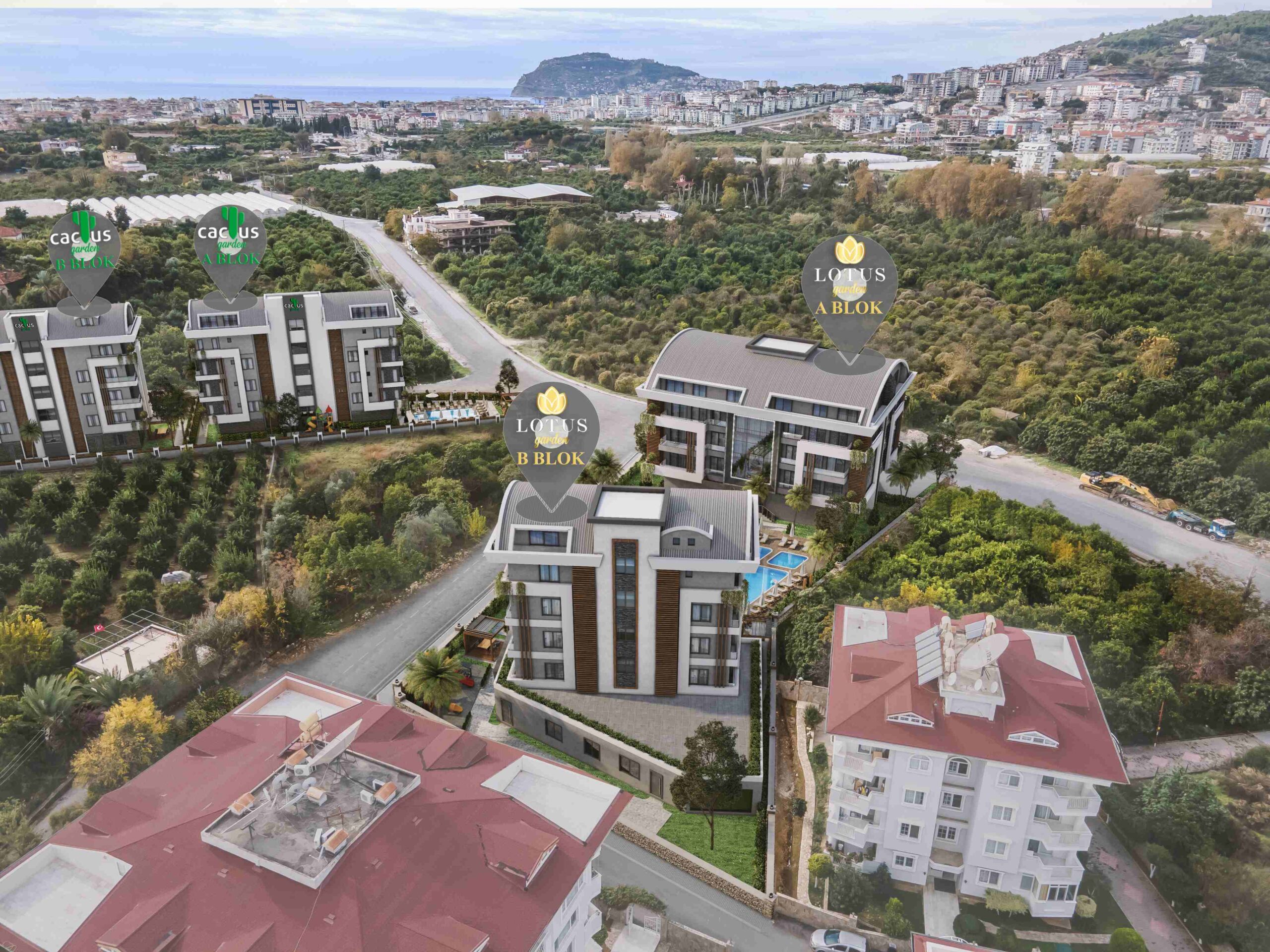 Lorus Garden Residence 2900 meters from the sea, 2500 meters from Alanya center and 35 kilometers from Alanya – Gazipaşa International Airport is positioned.