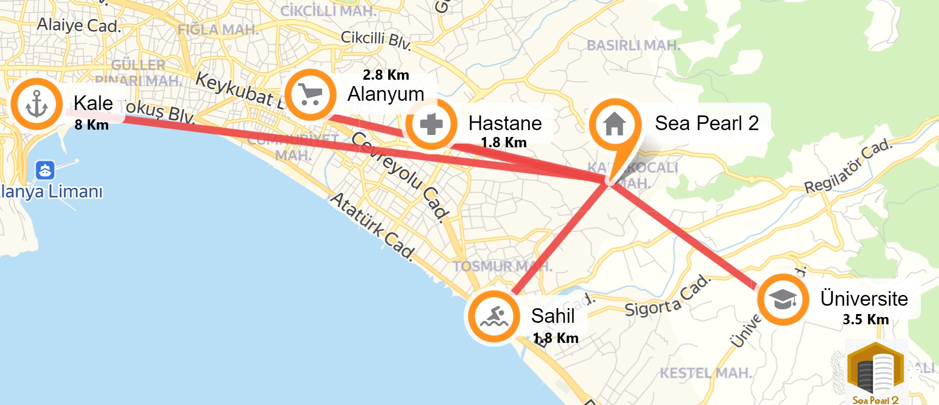 Easy Access Within the City: With a 5-minute distance to Alanya’s city center, Oba ensures seamless transportation via public buses or taxis, day or night. Whatever you need is at your fingertips in Alanya’s city center.