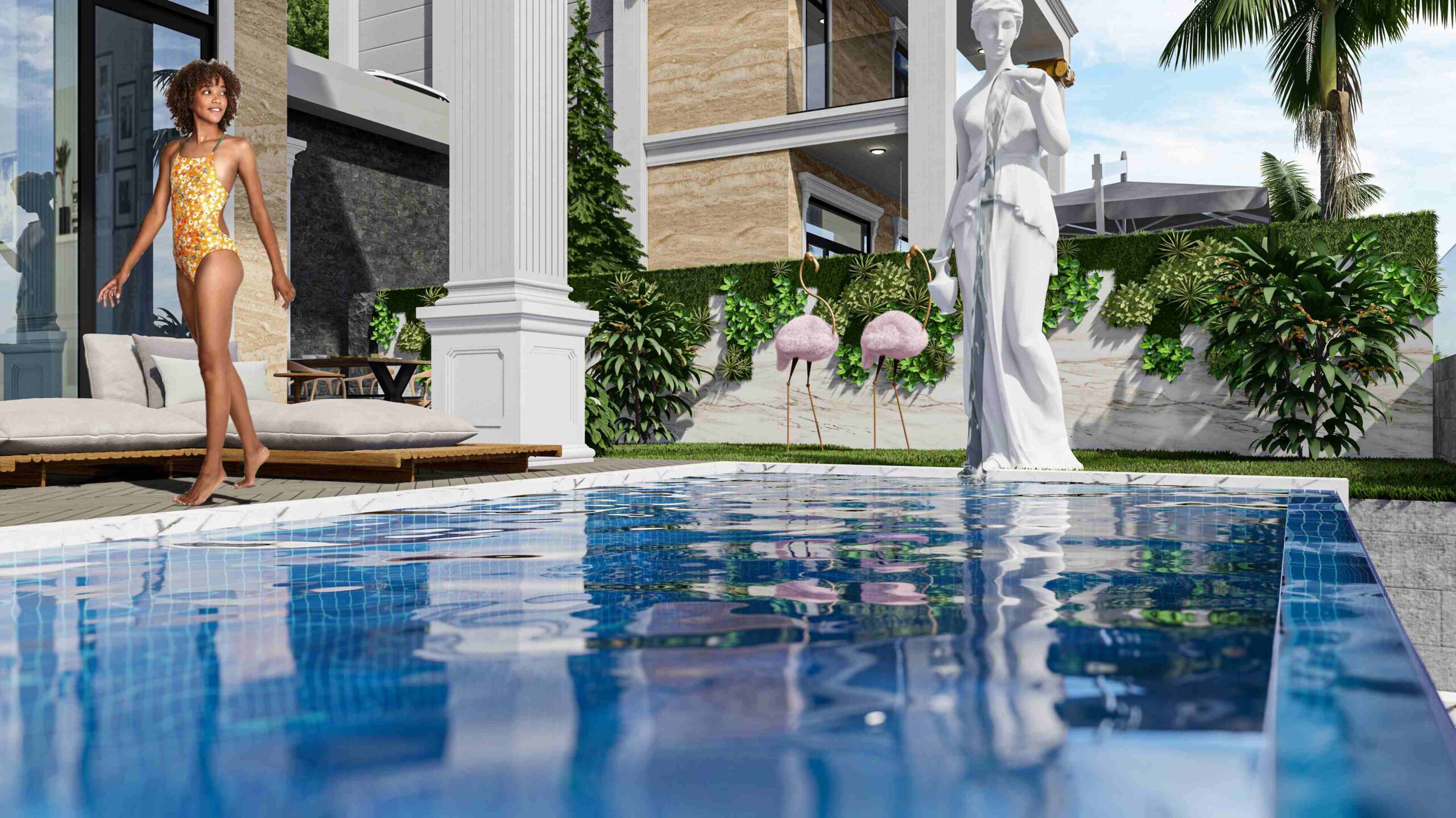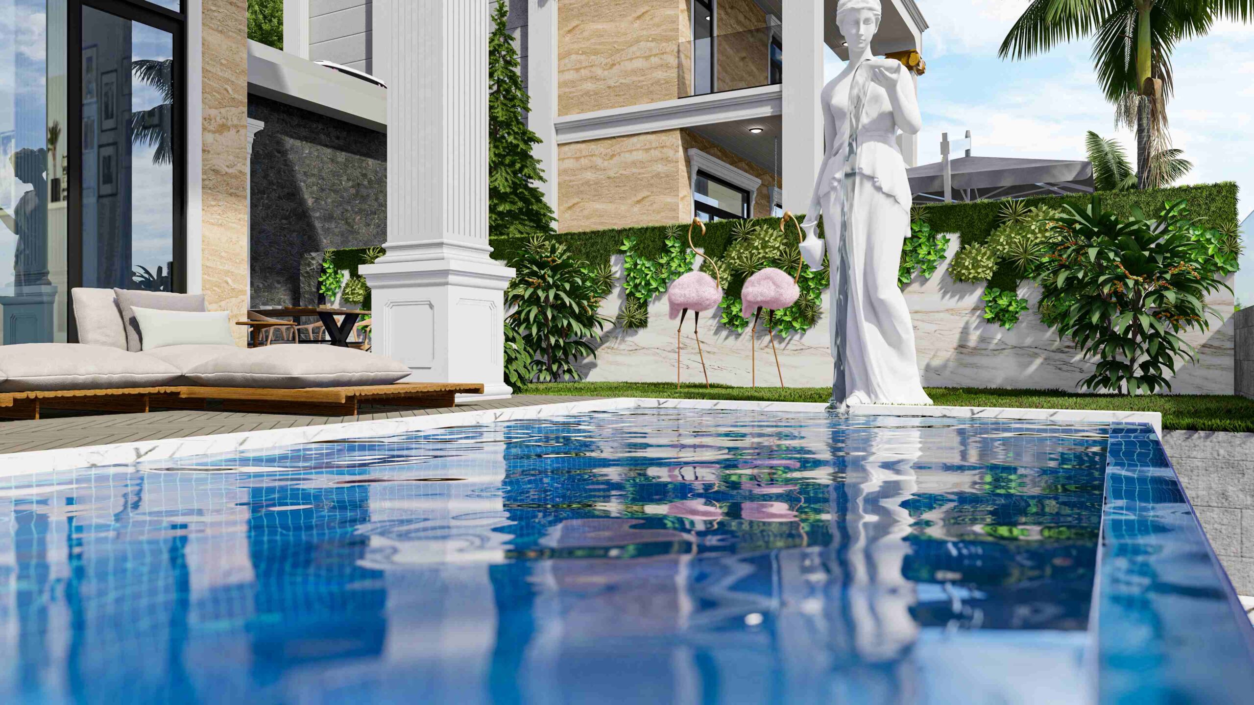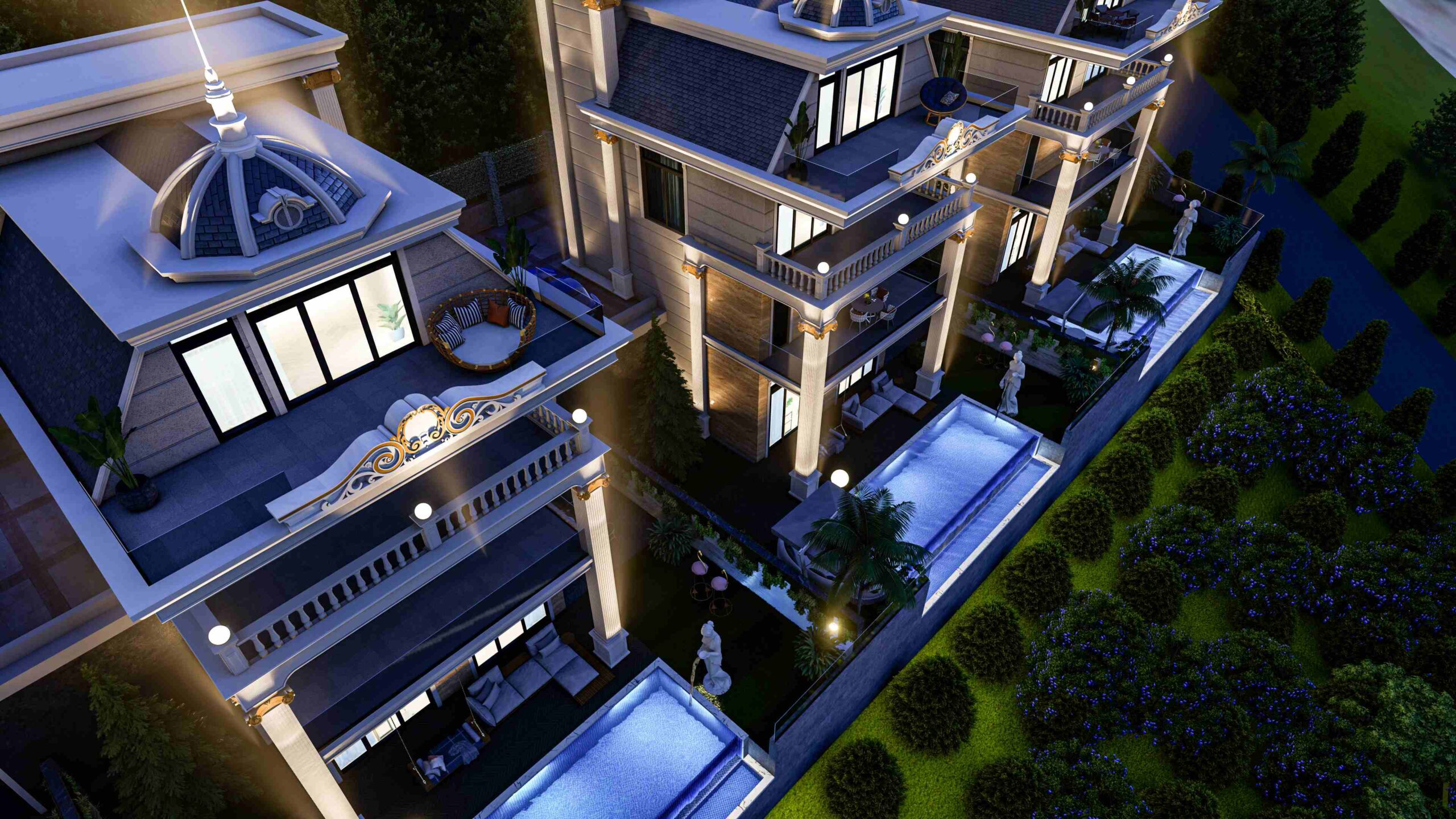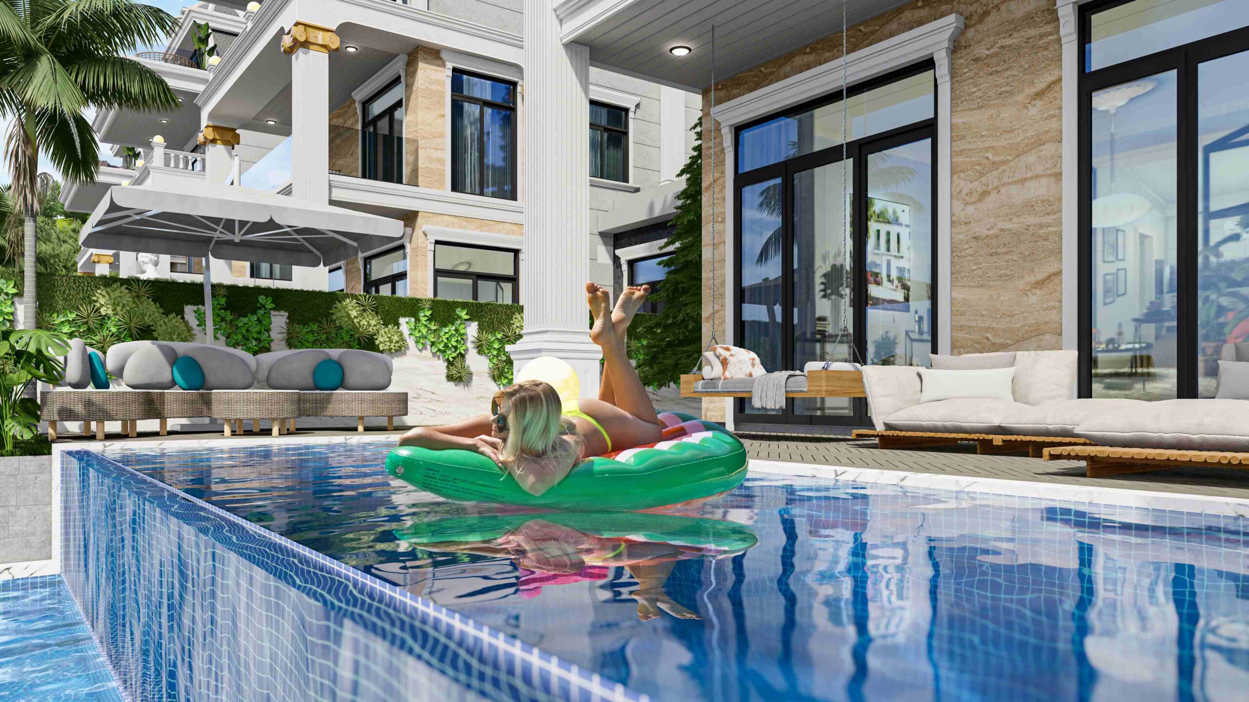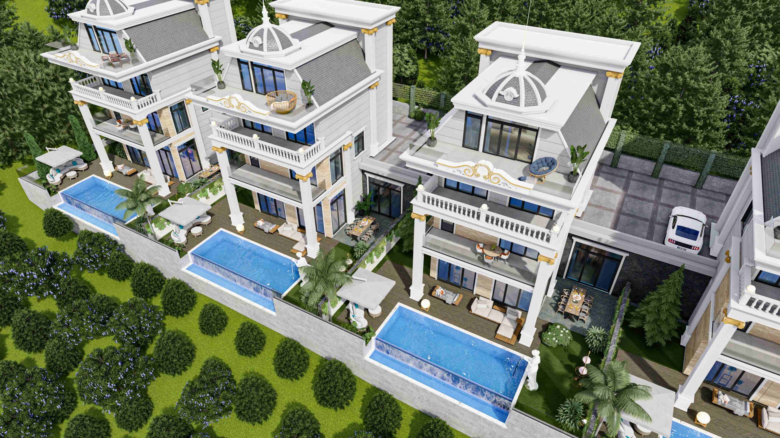 Each villa has 130 m² garden area, 28 m² pool area and car parking area. Enjoy unique living