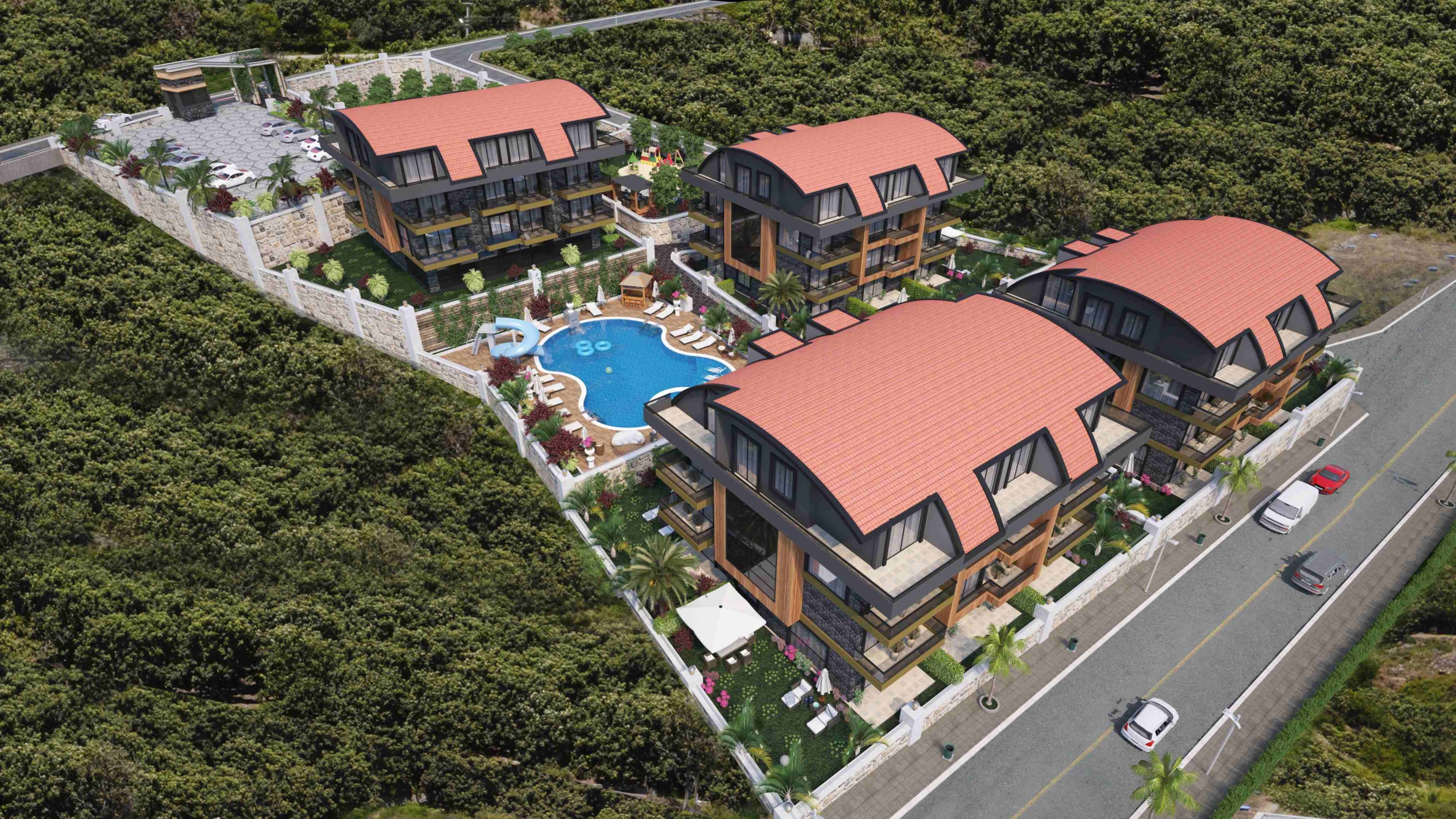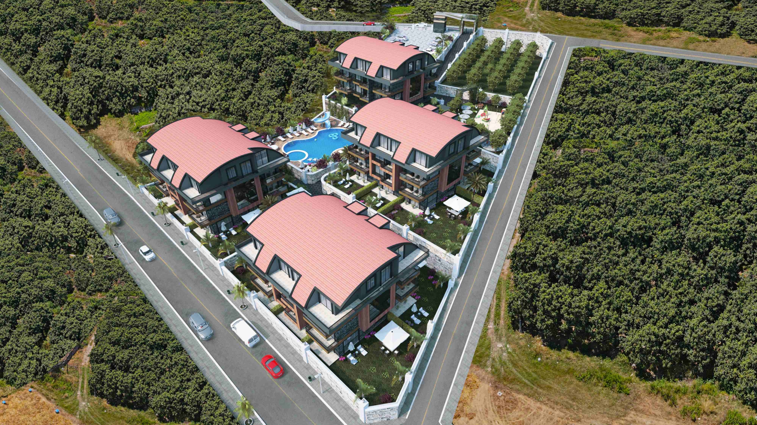 Experience the ultimate in luxury living in Alanya’s Büyükhasbahçe neighborhood with our exclusive project featuring stunning views of the city and the Mediterranean Sea. This 5,600 m2 project is situated on a hilltop overlooking the city, providing breathtaking views of the surrounding mountains and coniferous forests.