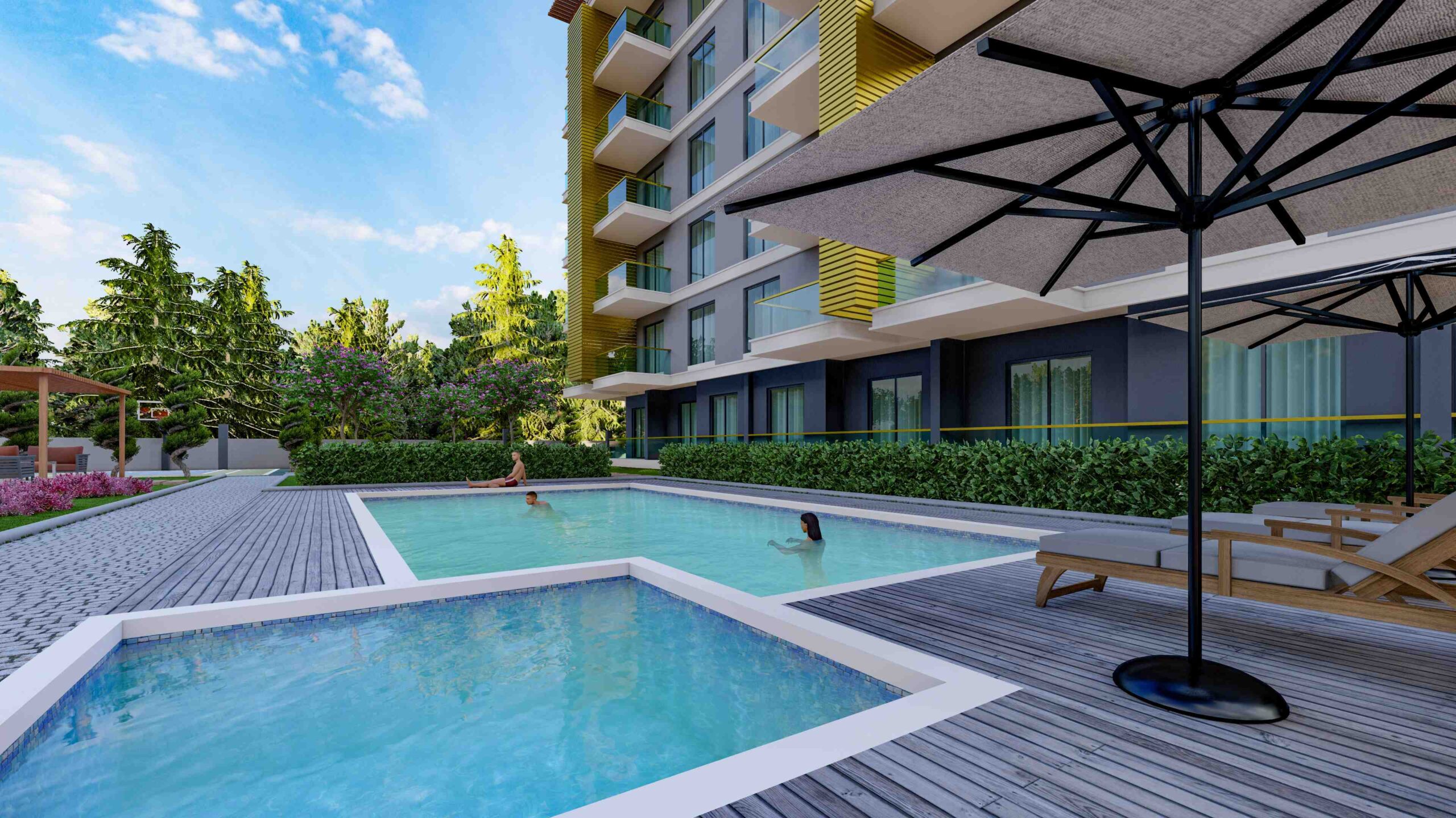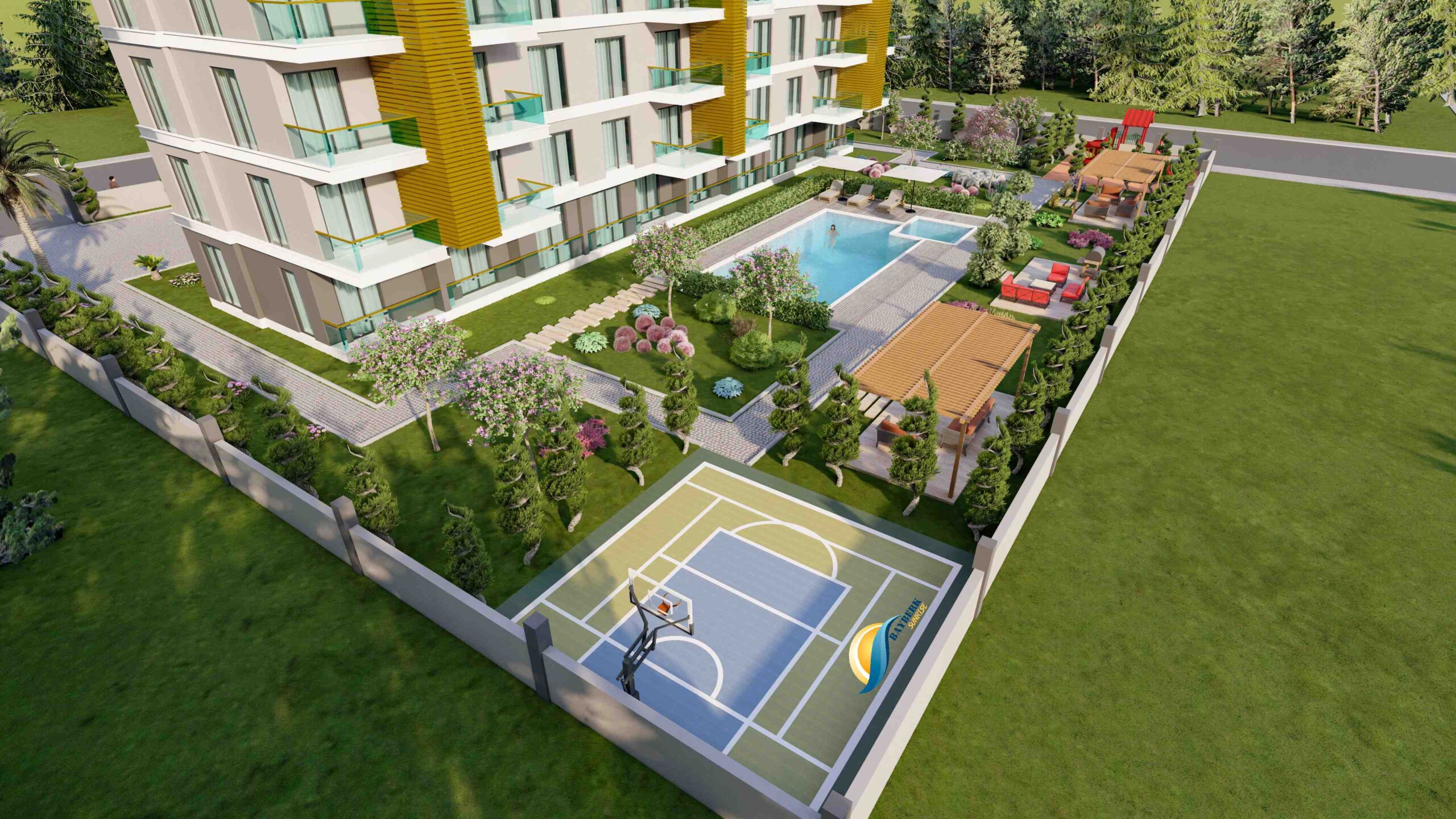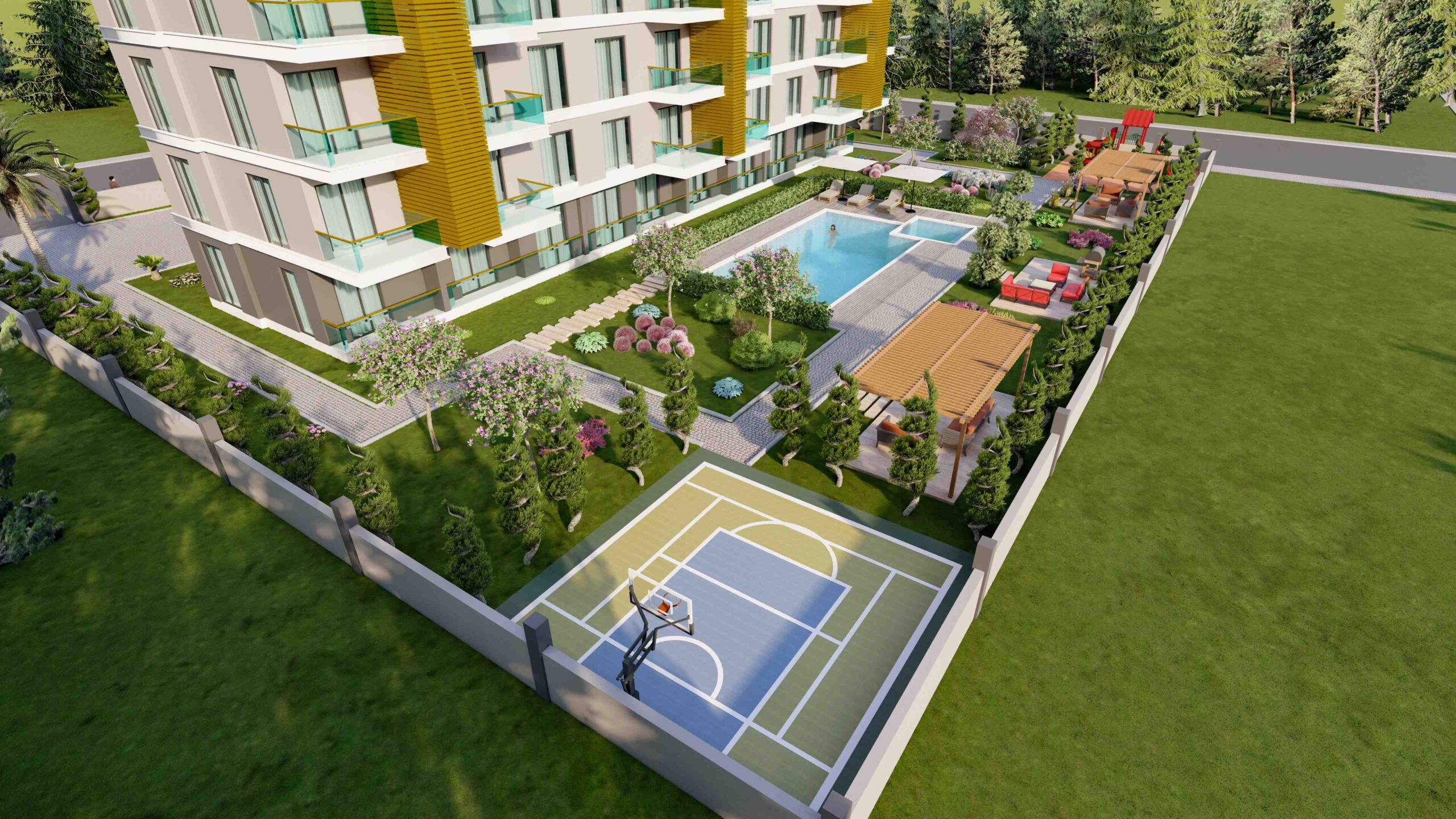 In addition to the stunning surroundings, our project provides an array of amenities to enhance your lifestyle. Dive into the refreshing swimming pool, let your children splash in the designated kids’ pool, or maintain your fitness regime at the well-equipped fitness center. Pamper yourself in the Turkish bath, sauna, or steam room, and indulge in the therapeutic benefits of salt therapy. Recharge your body and mind at the vitamin bar while your little ones explore the exciting children’s playground or game room. Host memorable barbecues in the designated area or challenge your friends to a match on the multi-sports court. Stay connected with the world through the free WiFi zone and take leisurely strolls in the lush green gardens. With 24/7 security and covered parking, your peace of mind is guaranteed.