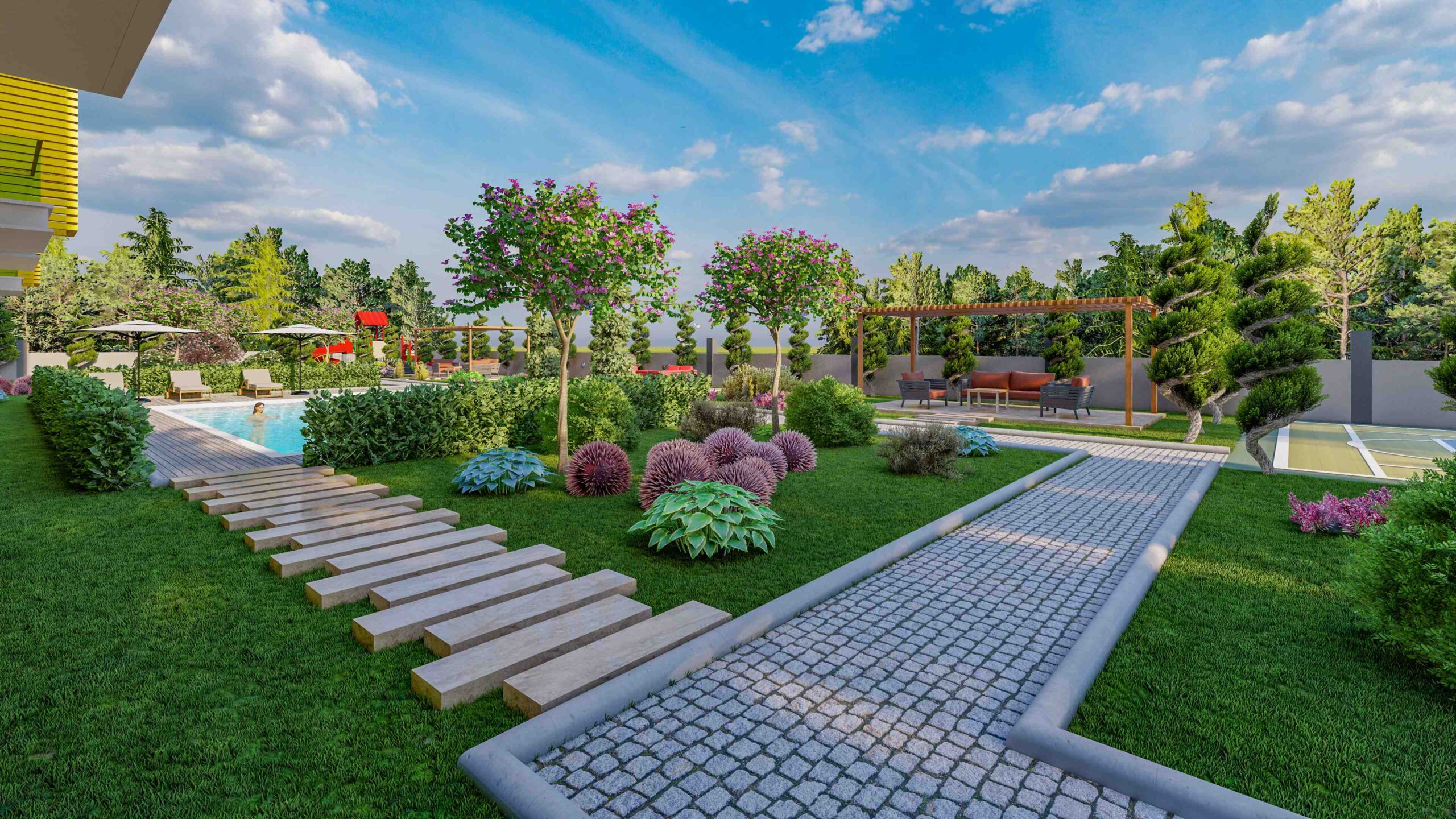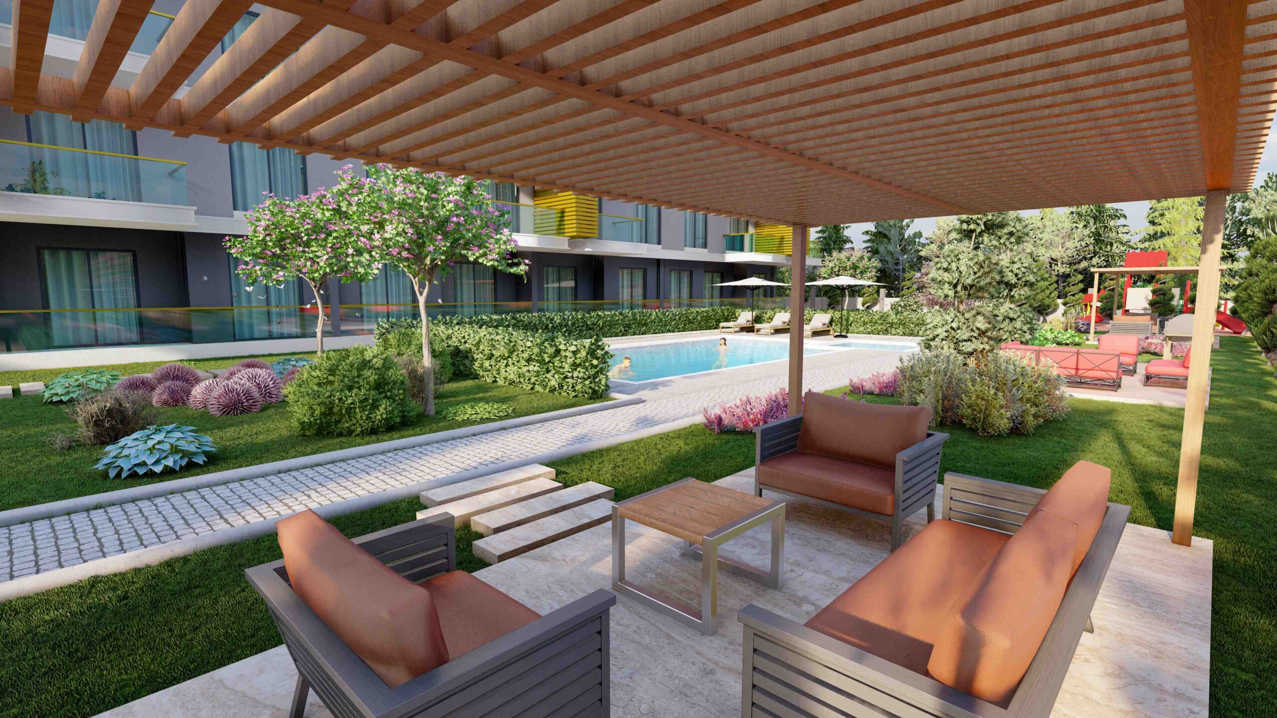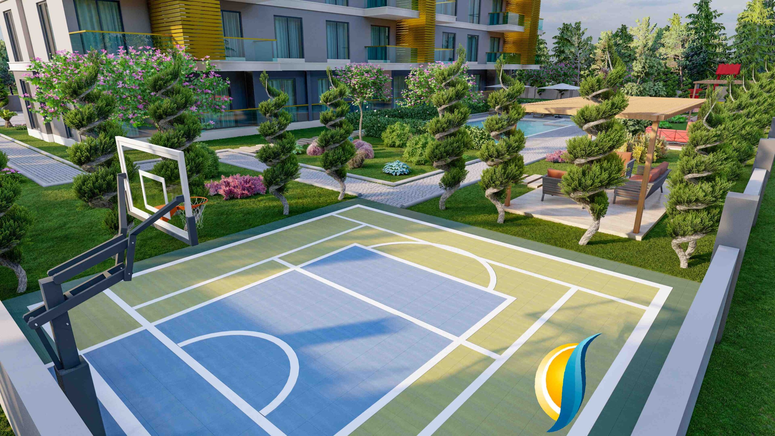 In addition to the stunning surroundings, our project provides an array of amenities to enhance your lifestyle. Dive into the refreshing swimming pool, let your children splash in the designated kids’ pool, or maintain your fitness regime at the well-equipped fitness center. Pamper yourself in the Turkish bath, sauna, or steam room, and indulge in the therapeutic benefits of salt therapy. Recharge your body and mind at the vitamin bar while your little ones explore the exciting children’s playground or game room. Host memorable barbecues in the designated area or challenge your friends to a match on the multi-sports court. Stay connected with the world through the free WiFi zone and take leisurely strolls in the lush green gardens. With 24/7 security and covered parking, your peace of mind is guaranteed.