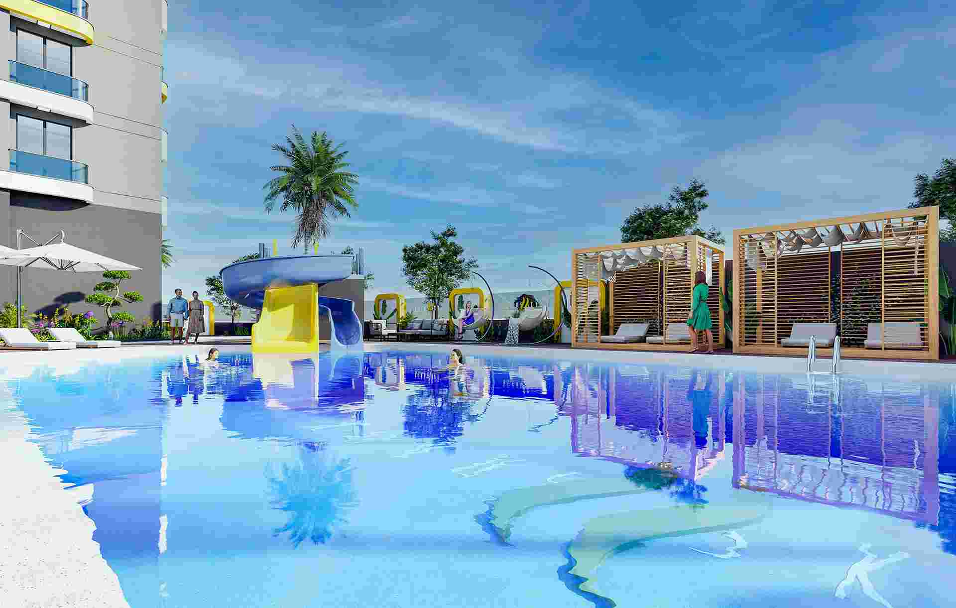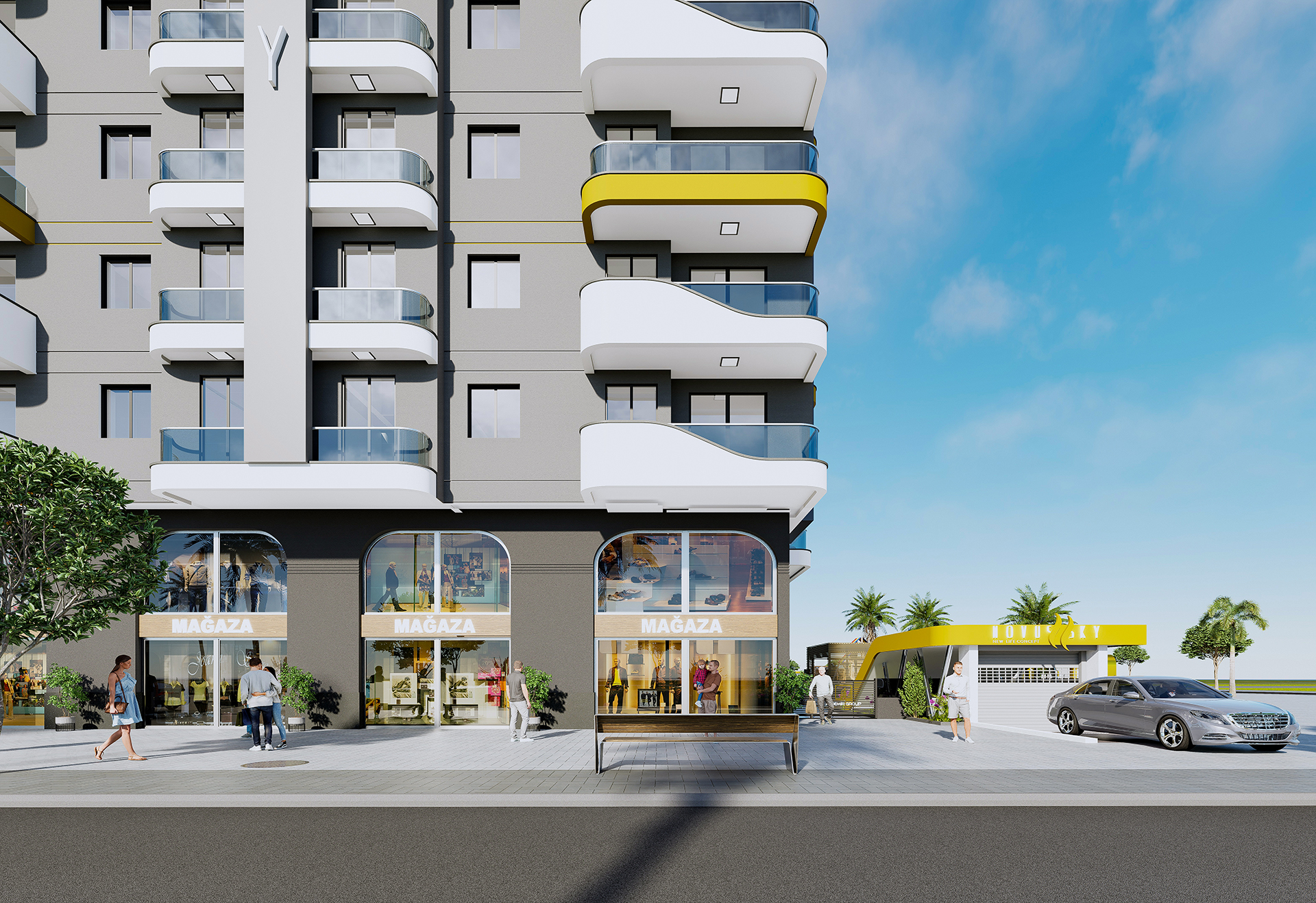 In addition to being 120 metres from the sea, the project is located in a position to meet all your needs with cafe, restaurant, bar, shopping centre options around it.