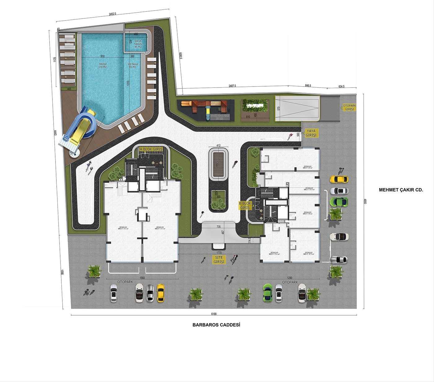 The project is prepared at a very high level in terms of social areas; Indoor-outdoor swimming pool, Turkish bath, sauna, children’s playground, fitness, indoor car park and reception area are just a few of them.