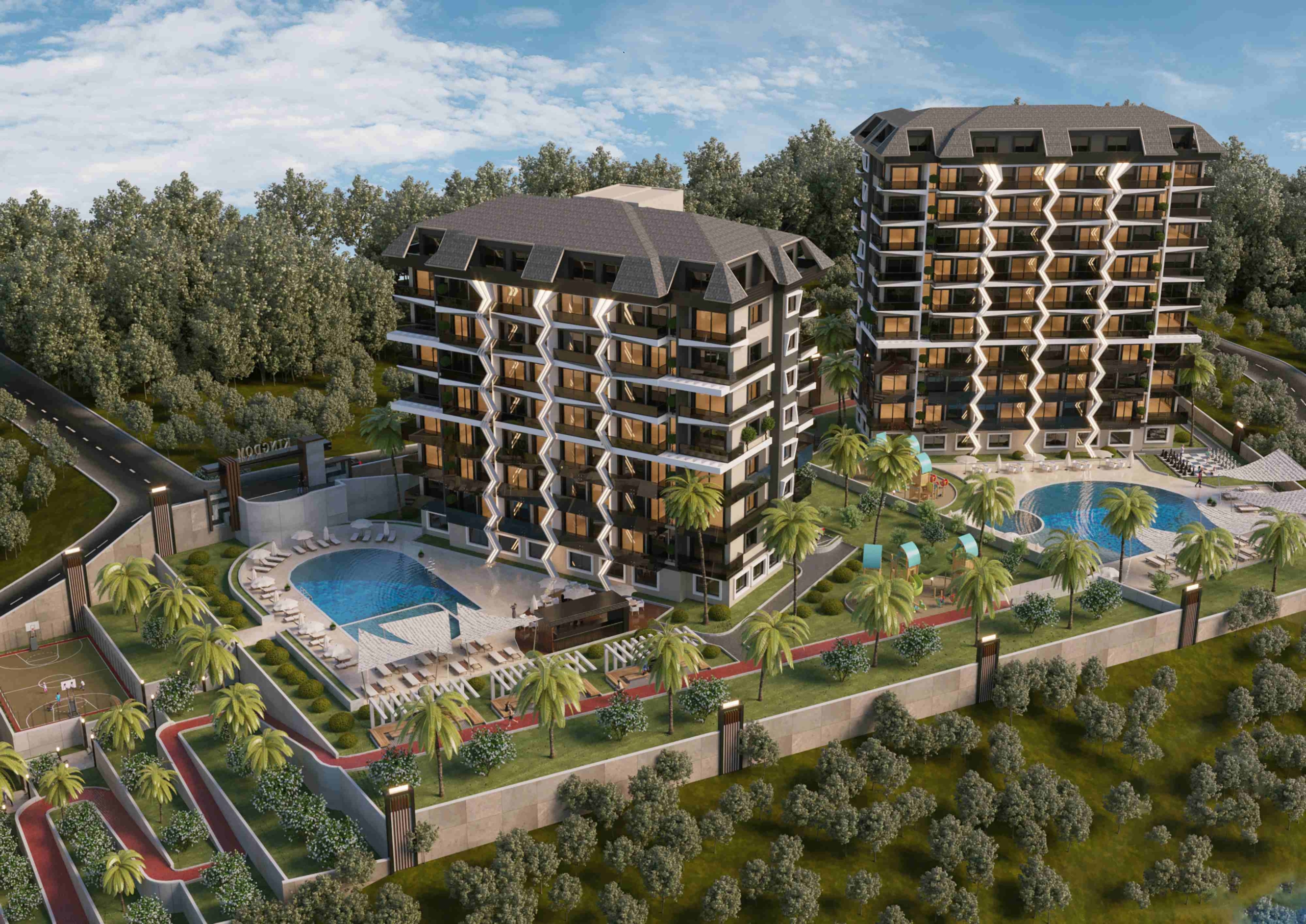 The infrastructure of the complex will include: an indoor and outdoor swimming pool in the block, a spa center, a Turkish bath, a sauna, a steam room, a recreation room, a fitness center, a cinema, a tennis court, a basketball and volleyball court, a children’s playground, a playroom, a mini -club, gazebo and barbecue, 7/24 security, security cameras, generator and free internet.