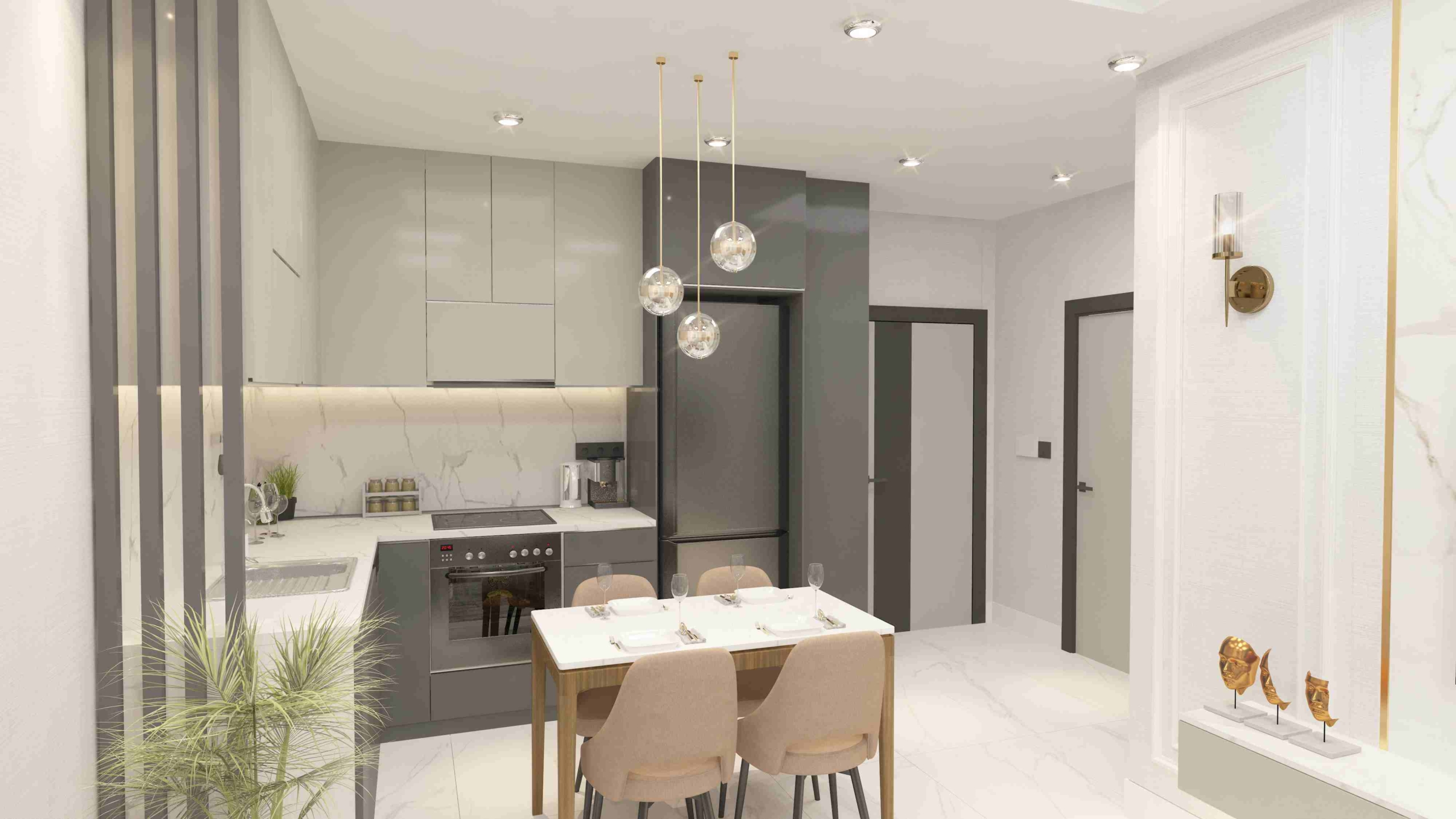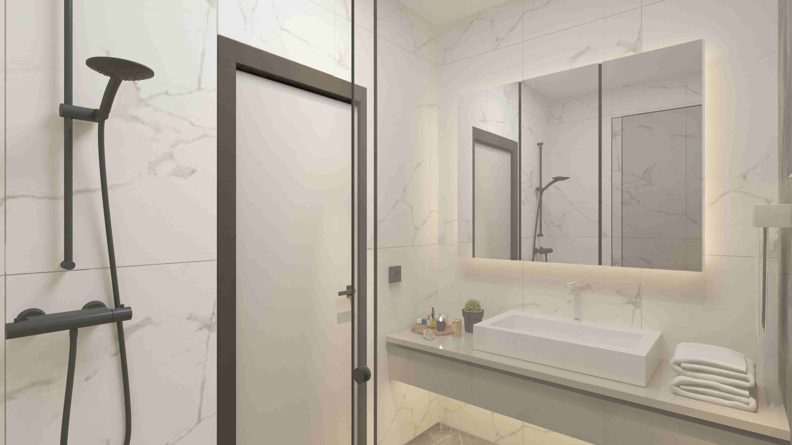 1 bedroom apartments are from 50 to 53 m2 – a living room, an open-plan kitchen, a bathroom, and a balcony