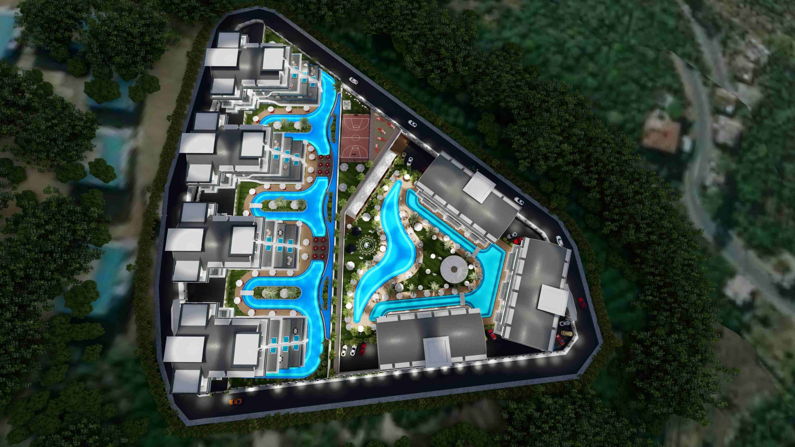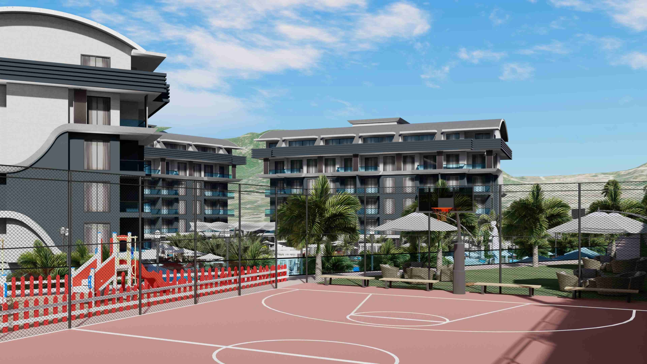 Volleyball and basketball courts