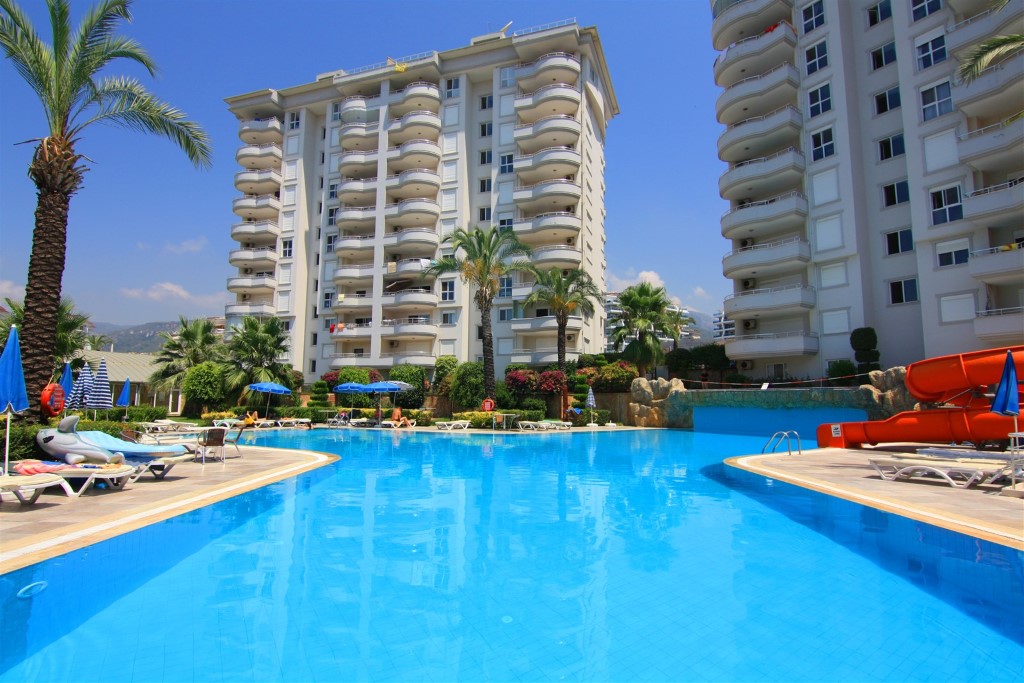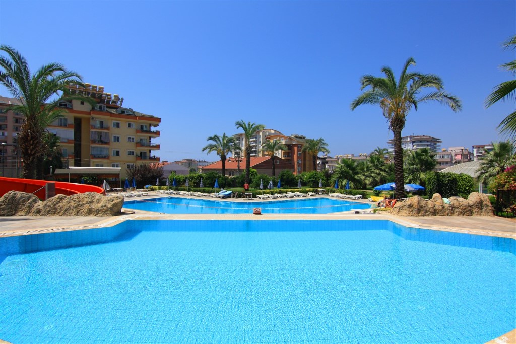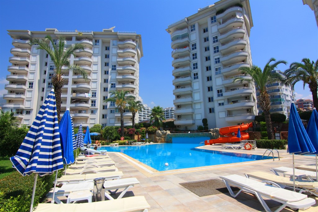 The apartment is fully furnished and equipped with white goods and air conditioners, making it move-in ready. The complex also offers a wide range of amenities, including a large outdoor pool, children’s pool, waterslide, indoor pool, fitness center, sauna, elevator, generator, parking, 7/24 security, doorkeeper, and SAT TV connection.