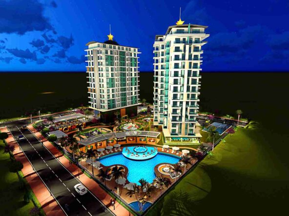 Добро пожаловать в мир непревзойденной роскоши в очаровательном районе Каргыджак в Алании. Расположенный всего в 300 метрах от моря, этот великолепный 5-звездочный жилой комплекс в стиле отеля занимает обширный участок площадью 6645 м² и состоит из трех элегантных пятиэтажных зданий.