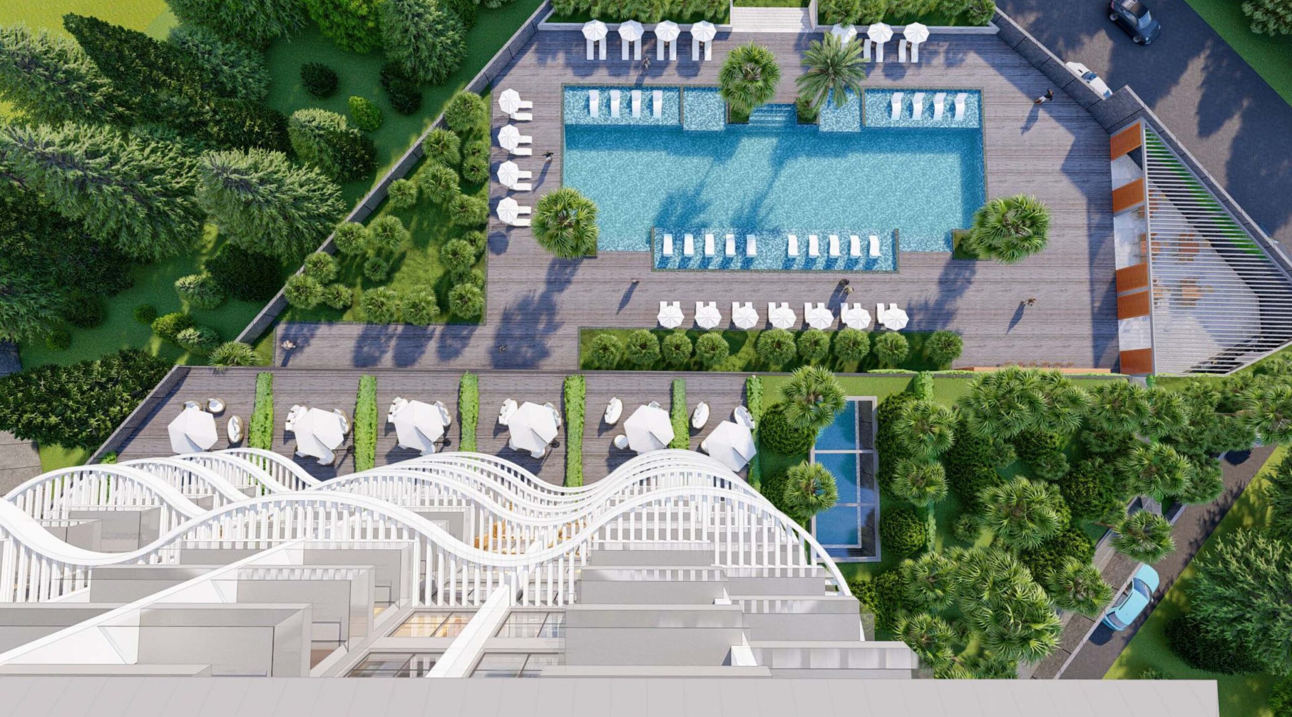 На выбор предлагаются высококачественные квартиры, в том числе 1+1 и 2+1, а также 2+1 и 3+1 с садом и крышей, с отделкой, сантехникой и кухонной мебелью самого высокого класса. Территория будет украшена декоративным садом и зелеными насаждениями.
