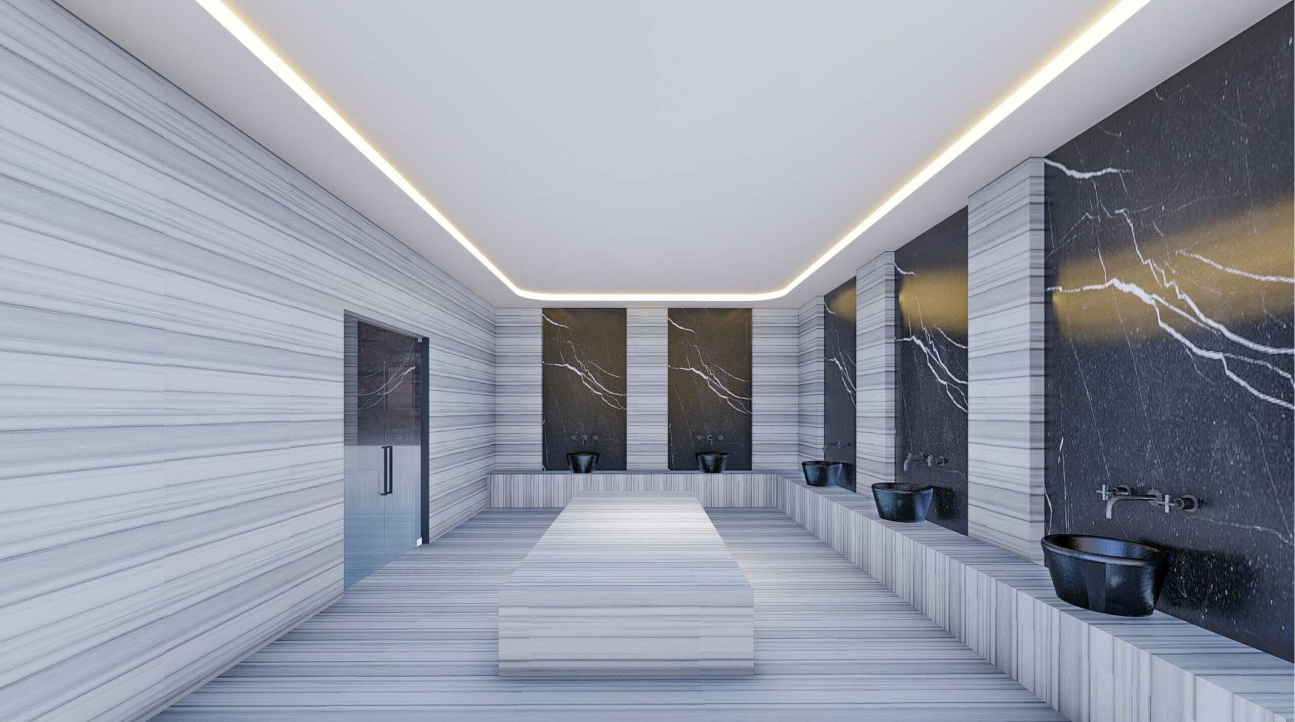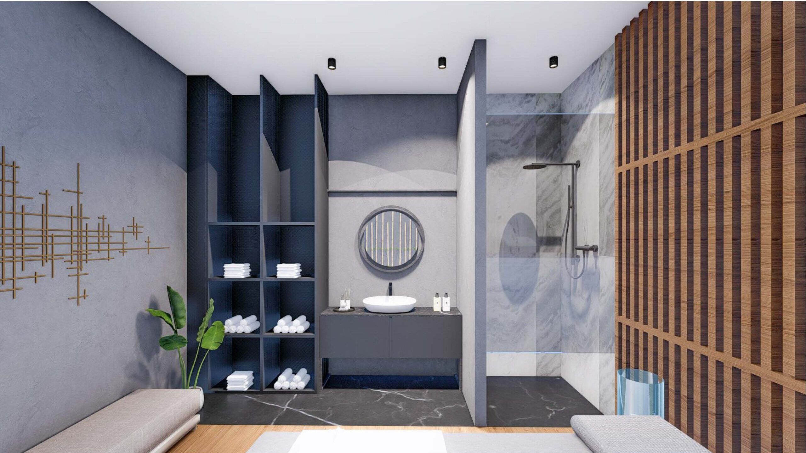 На кухне установлена специально разработанная модульная кухонная мебель, гранитные столешницы и керамогранитное покрытие пола, а в ванной комнате - бордюрные керамические пол и стены, душ и электрический гейзер. Балконы отличаются хорошими пропорциями, стеклянными и алюминиевыми перилами, керамической облицовкой и наружным освещением.