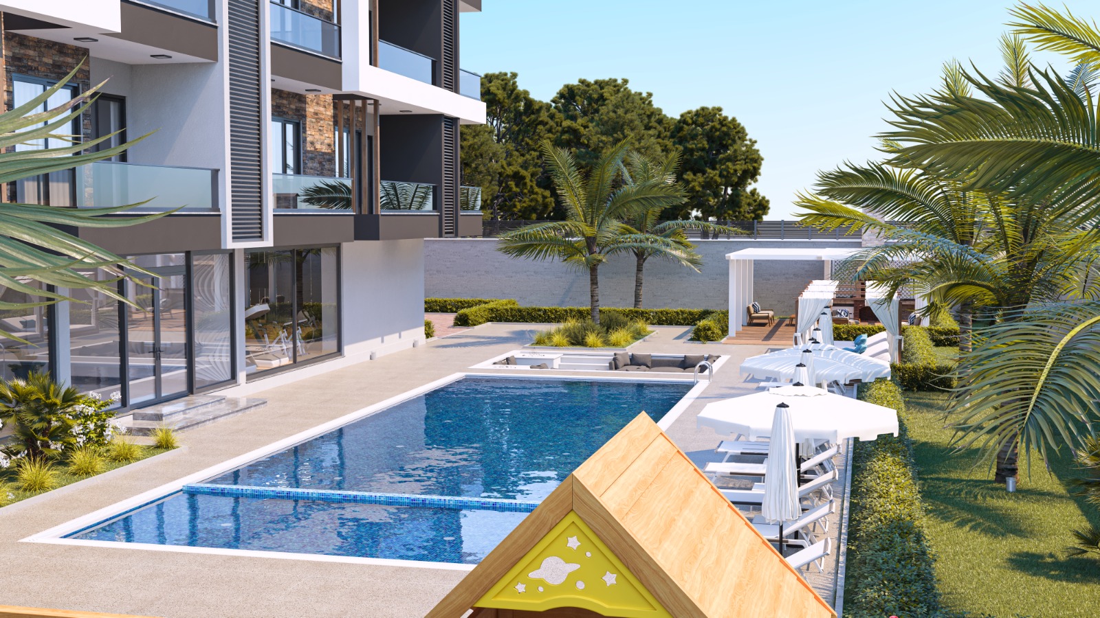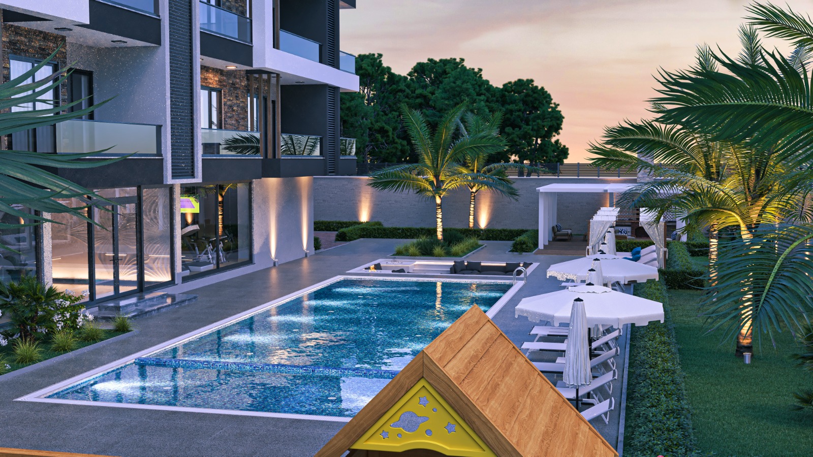 Новые квартиры на продажу в Авсалларе, Алания; Joseph474 состоит из 41 квартиры, 36 1+1 и 5 2+1 дуплексов, на участке площадью 2006,3 м2.