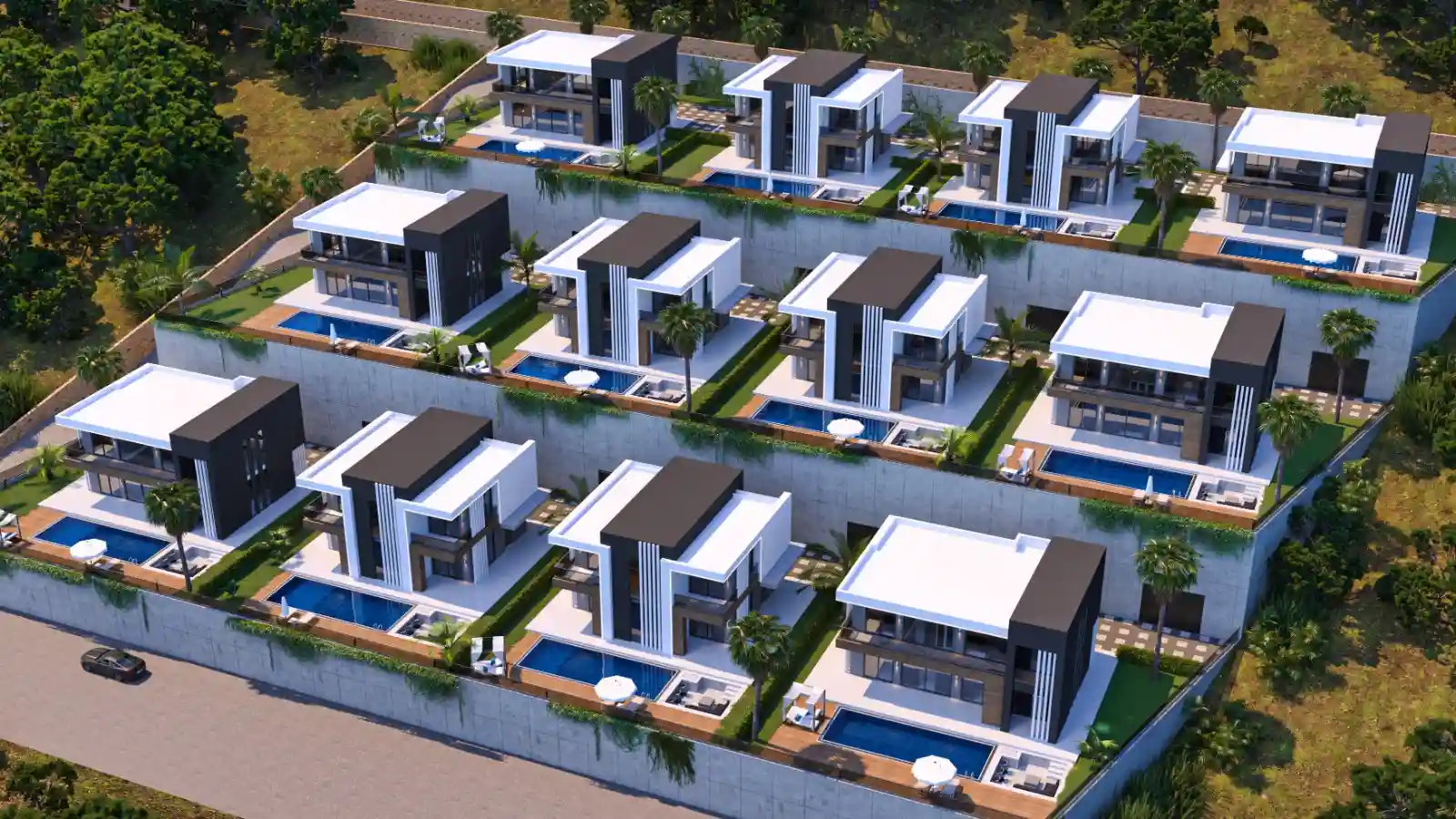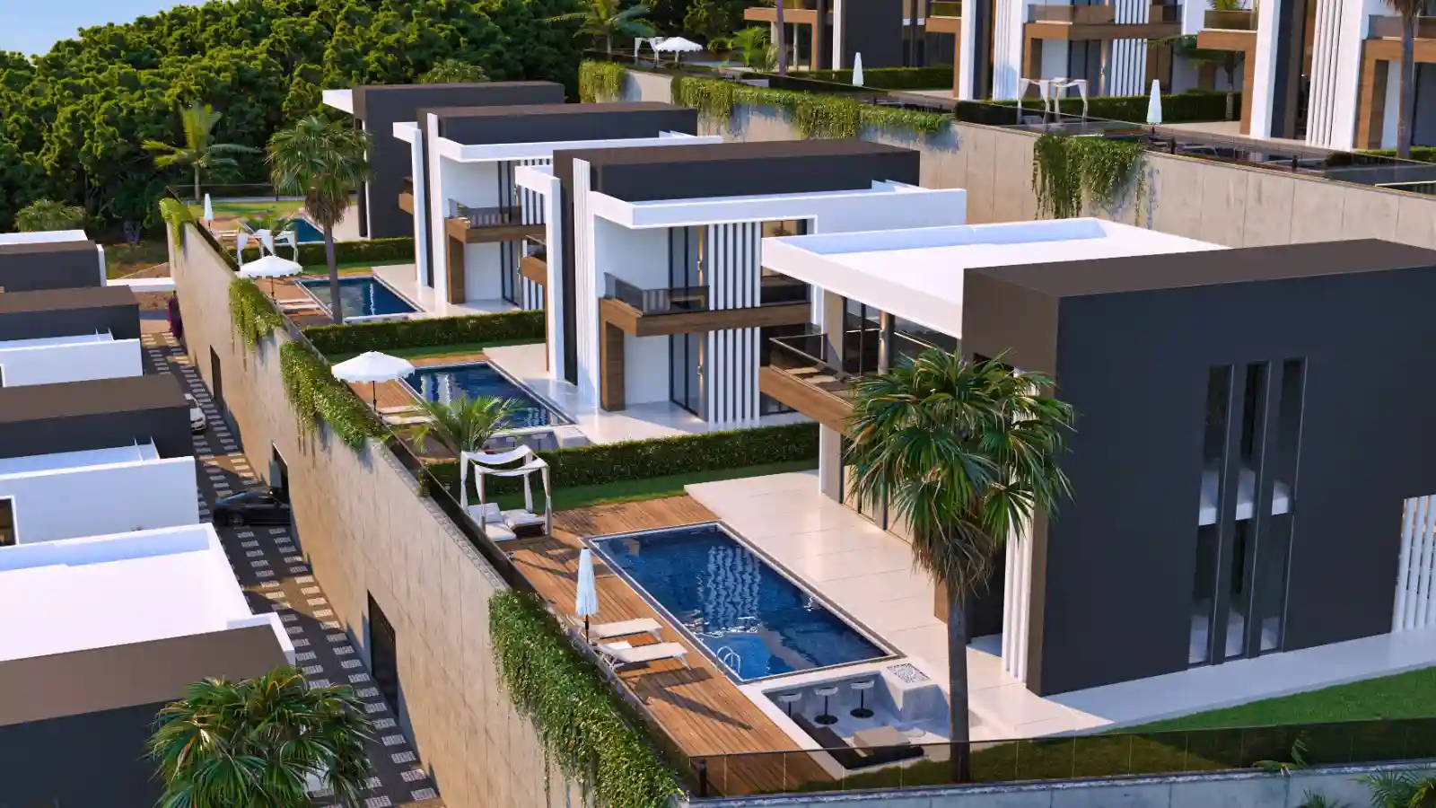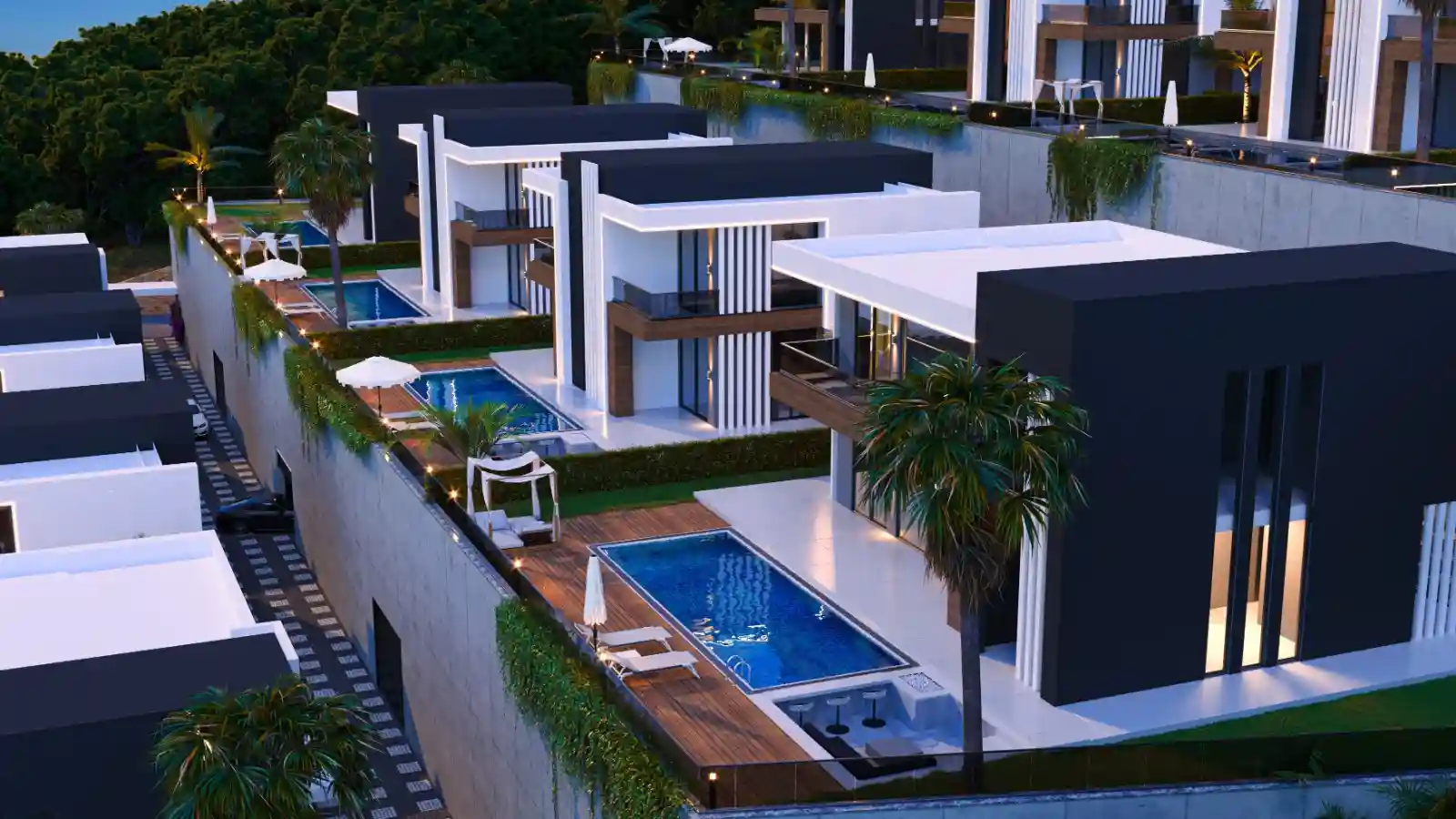Villa Özellikleri: Her villada bulunan özel havuz, geniş bahçe, akıllı ev sistemi, yerden ısıtma sistemi, asansör ve garaj lüks ve konforlu bir yaşam deneyimi sunmaktadır. Bodrum katında masaj odası, sauna, bilardo ve fitness alanı yer almakta ve eksiksiz bir aktivite paketi sunmaktadır.