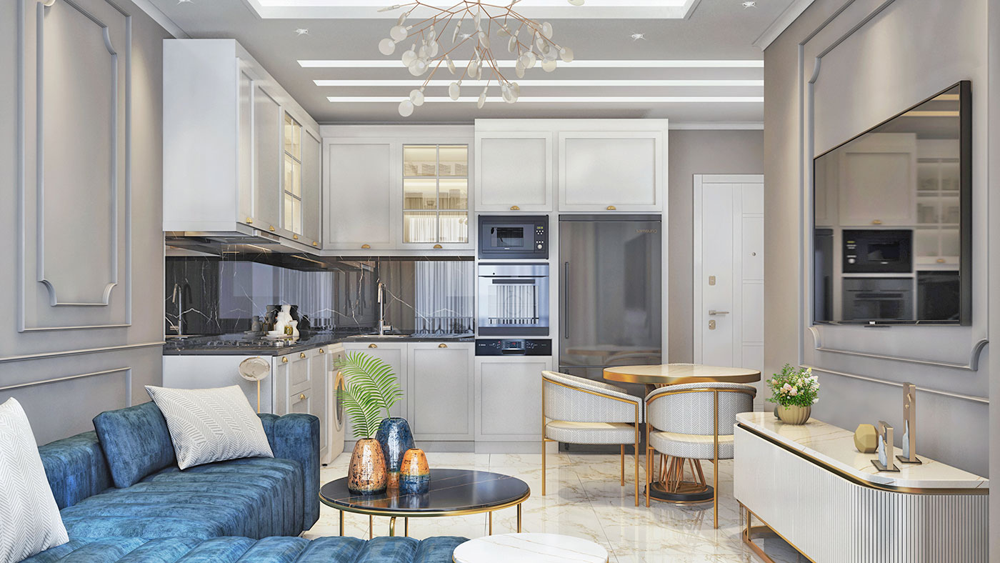 57 m² alana yayılan bu tamamen mobilyalı 1+1 daire, ihtiyaçlarınıza uygun rahat bir yaşam alanı sunmaktadır.