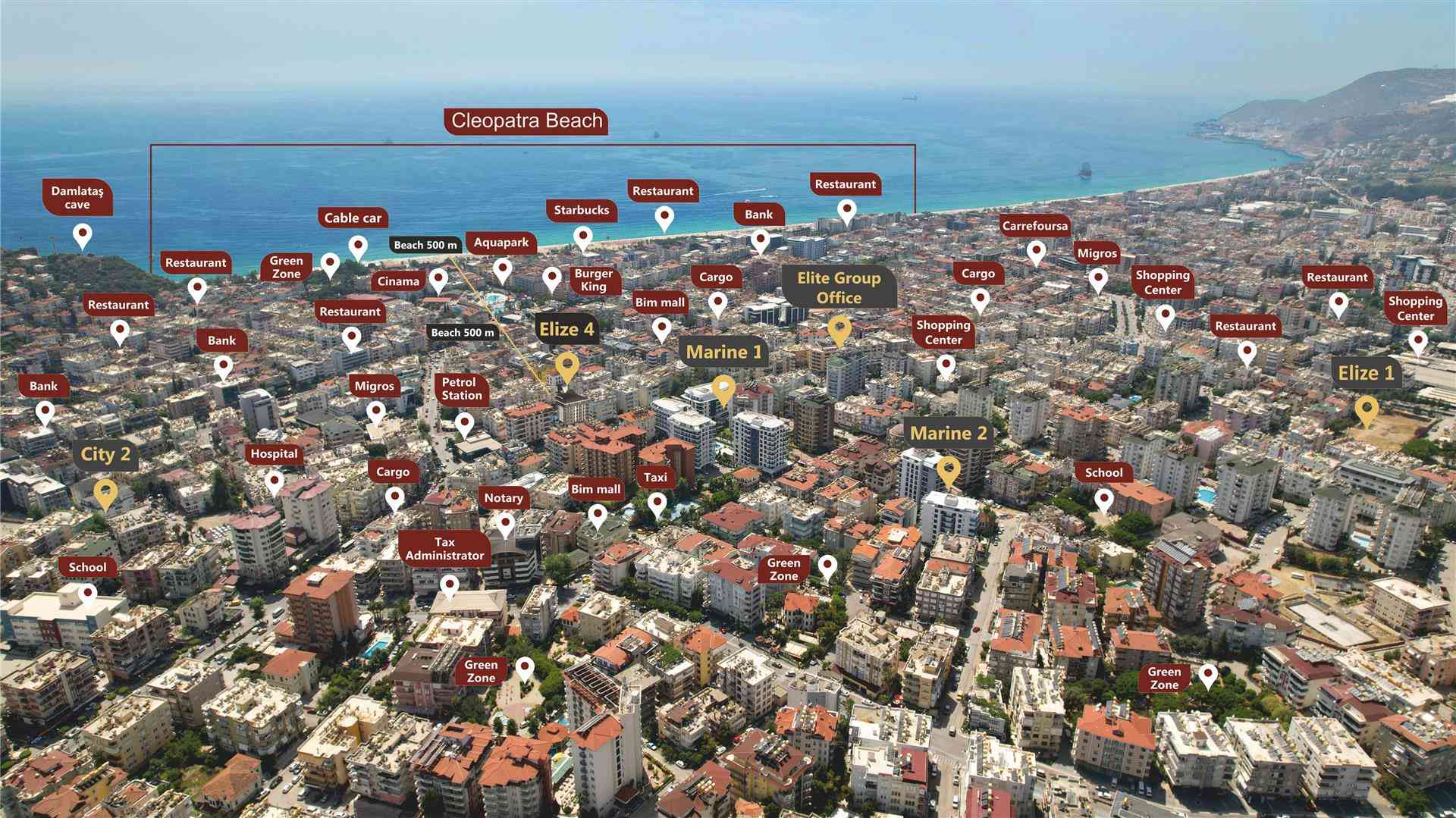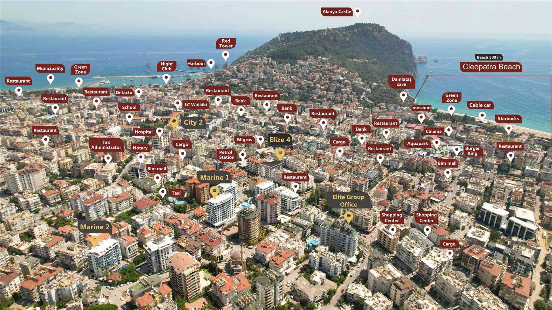 Bu projenin en önemli avantajlarından biri de kıskanılacak konumudur. Alanya bölgesinde çok az sayıda arsa böylesine muhteşem deniz manzarası ve plaja yakınlık sunmaktadır. Mağazalara, restoranlara, zarif Liman bölgesine ve ünlü Kleopatra plajına yürüme mesafesinde olmanın rahatlığını yaşayın ve kendinizi bu kozmopolit şehrin canlı atmosferine bırakın.