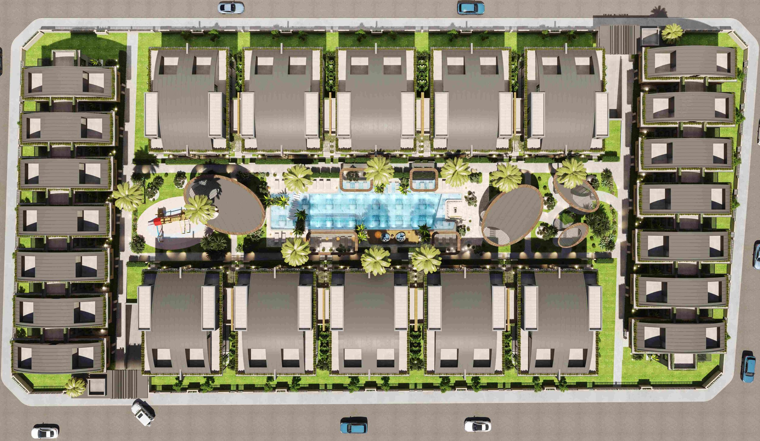 Villalar, 3.500 metrekarelik peyzaj alanı ile 8.539 metrekarelik geniş bir proje alanı üzerinde yer almaktadır. Arsa/blok numaraları 9833/4 olup, zemin kalitesi ZB, beton sınıfı C 35 ve demir sınıfı B420C'dir. Villalar, özel olarak tasarlanmış ortak yüzme havuzu, fitness merkezi, eğlence odası, sinema, çocuk kulübü, sauna, 68 araçlık kapalı otopark, 7/24 kameralı güvenlik, interkom sistemi, yüksek hızlı internet altyapısı (fiber), jeneratör, yangın alarm ve duman algılama sistemi, su arıtma ve yumuşatma sistemi, sprinkler yangın söndürme sistemi, yıldırımdan korunma sistemi ve doğalgaz altyapısı gibi bir dizi üst düzey olanakla birlikte sunulmaktadır.