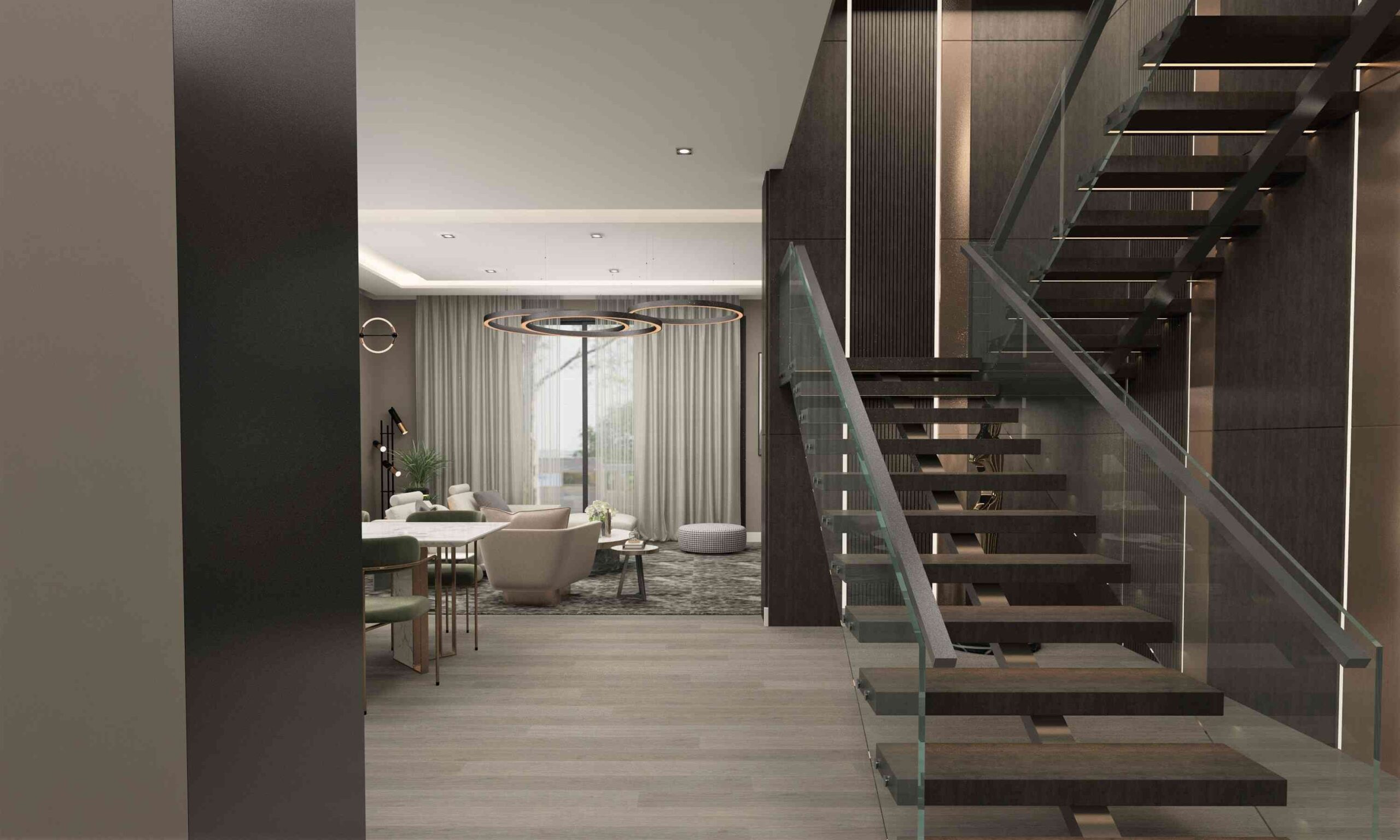 Her villa 3 katlıdır: zemin kat, 1. kat ve çatı katı. Zemin katta geniş bir açık plan mutfak salonu, merdivenler, antre, asansör ve wc bulunmaktadır. 1. katta Villa A için 2 oda ve bir çamaşır odası bulunmaktadır. Ayrıca ebeveyn banyolu bir odada giyinme odası ve balkon, diğer odada ise ebeveyn banyosu ve balkon bulunmaktadır. Çatı katında ise 2 oda, 2 teras ve bir çamaşır odası bulunmaktadır. Her odada ebeveyn banyosu ve teras bulunmaktadır.