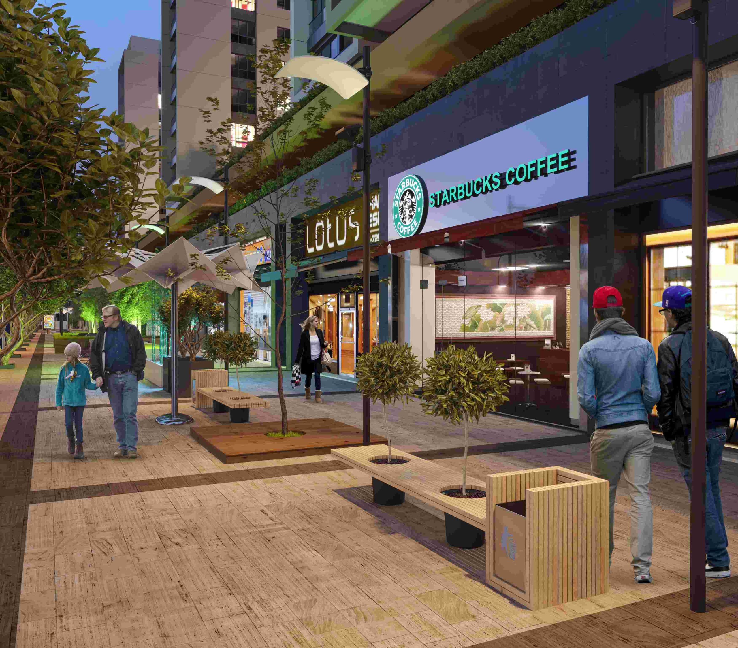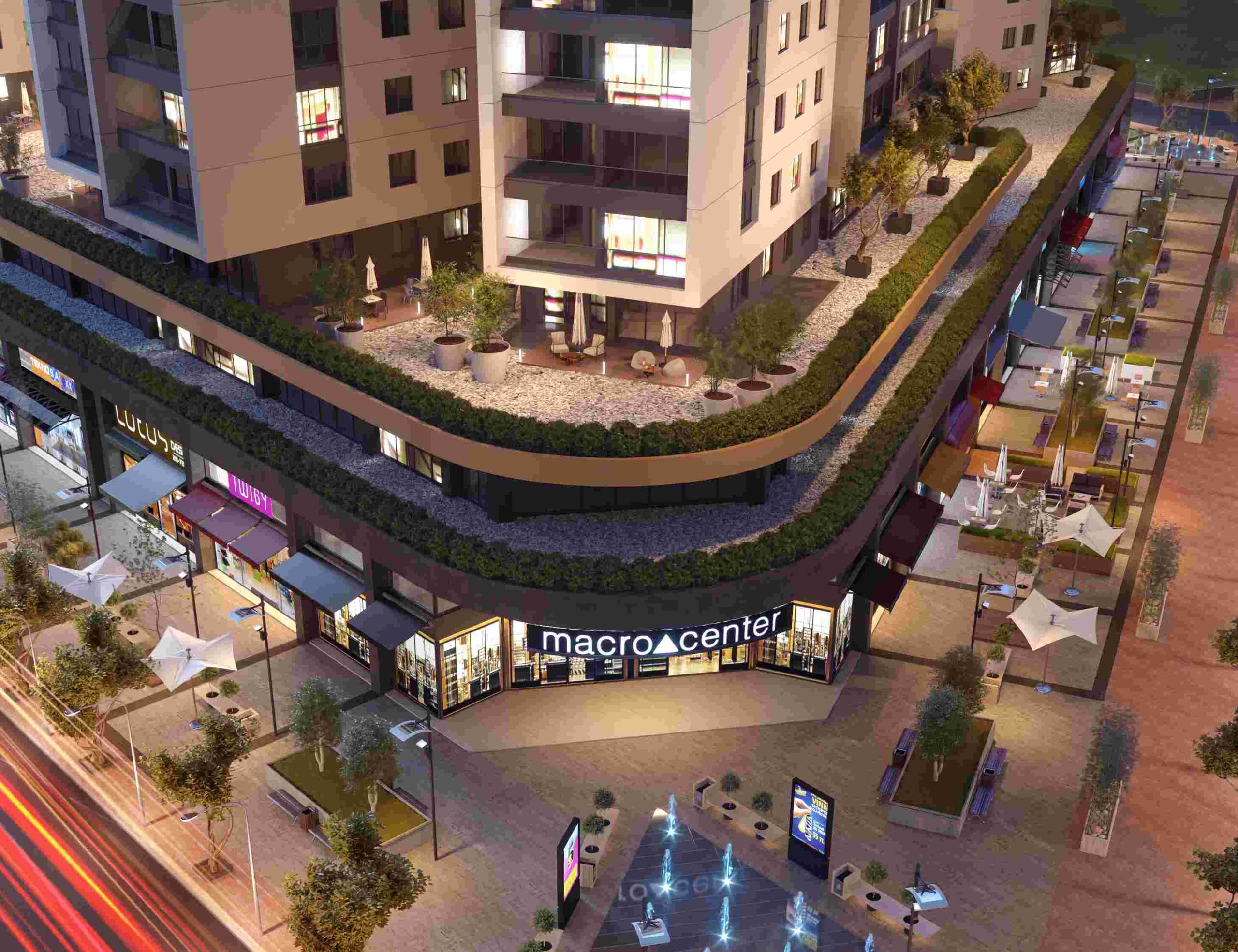 Eşsiz bir kültürel ortam yaratma çabasıyla, proje sürdürülebilir mimari çözümlere sahip konut, ticari ve ofis katlarını içermektedir. Kompleksin dış tarafının giriş katında, tüm çevre boyunca, kafeleri, alışveriş merkezlerini, kahvehaneleri donatmak için özel olarak yapılmış 33 dükkan bulunmaktadır. İş merkezleri için 28 ofis, ticari mağazaların üzerinde ve projenin tüm dış çevresinde yer almaktadır.