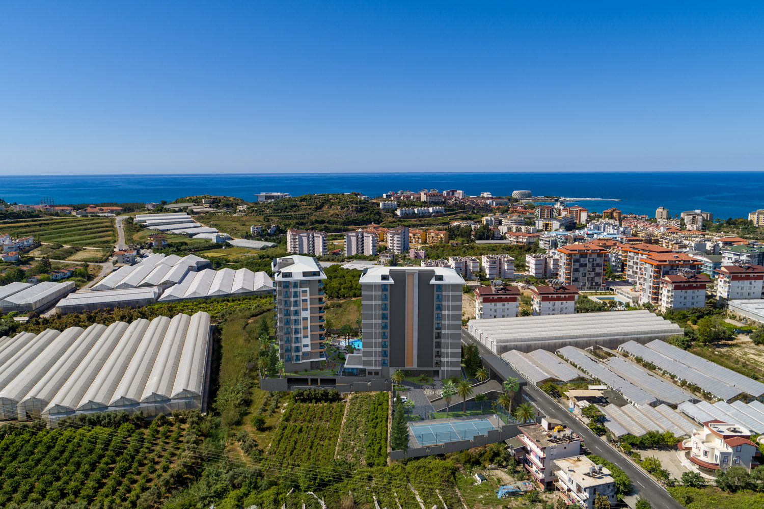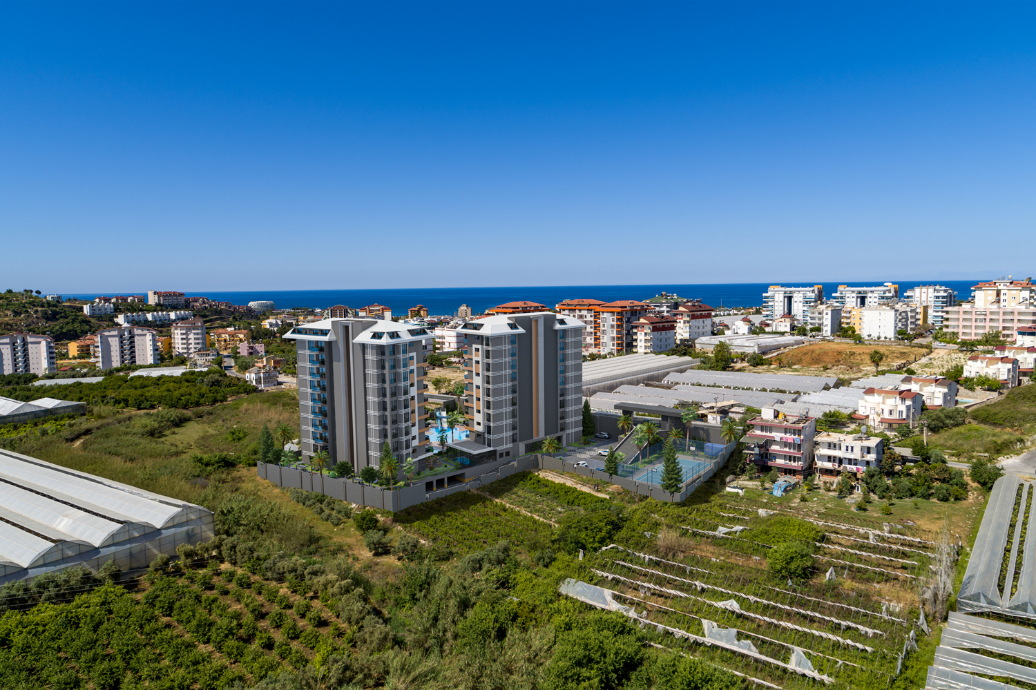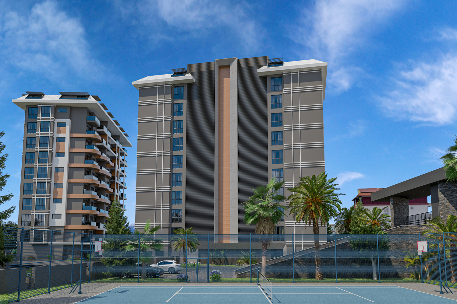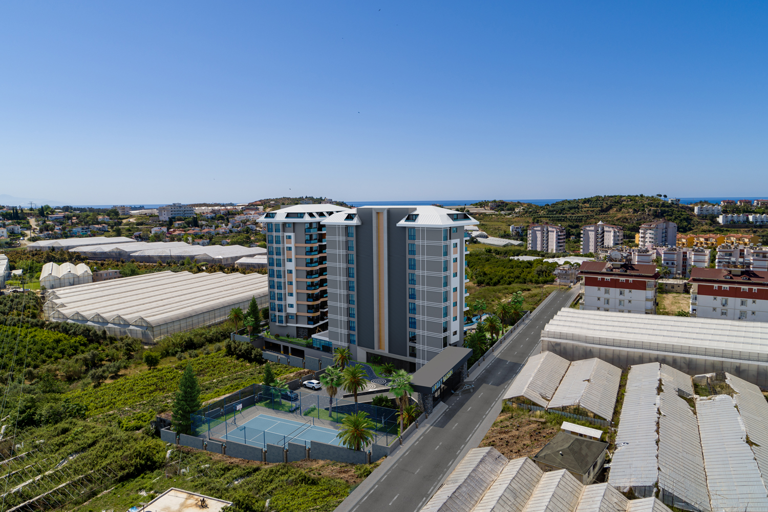 Konut, Alanya'nın önde gelen bir mimarlık firması tarafından tasarlanan modern tasarımıyla çeşitli düzenlerde 117 daire barındıran iki bloktan oluşmaktadır.