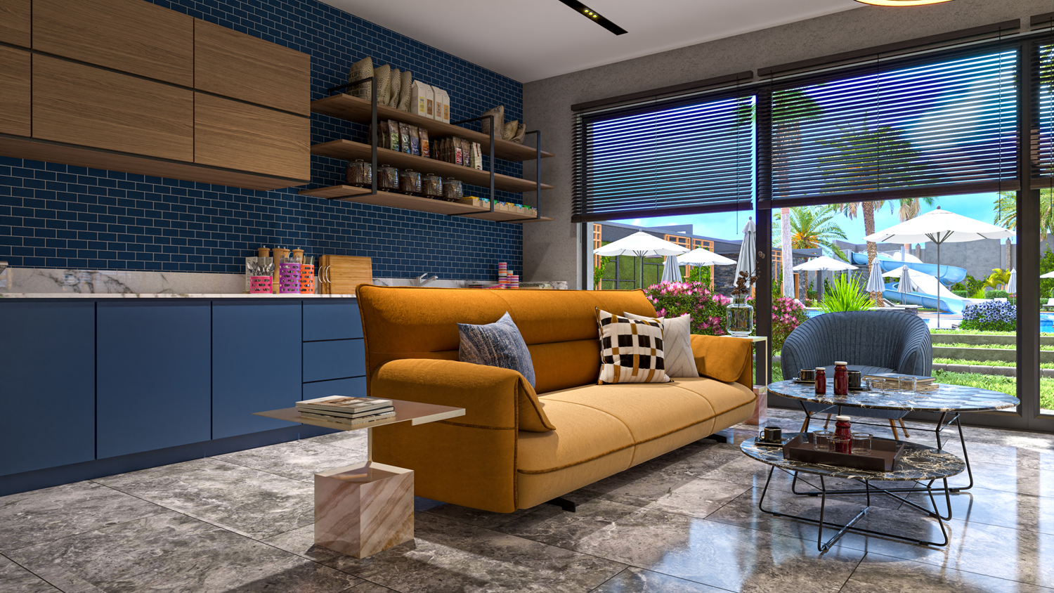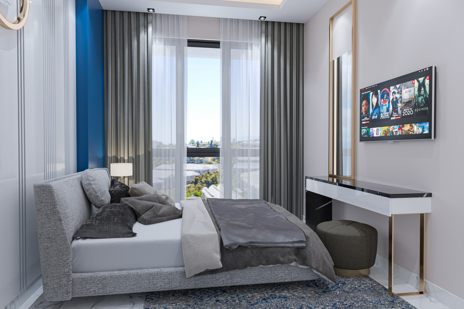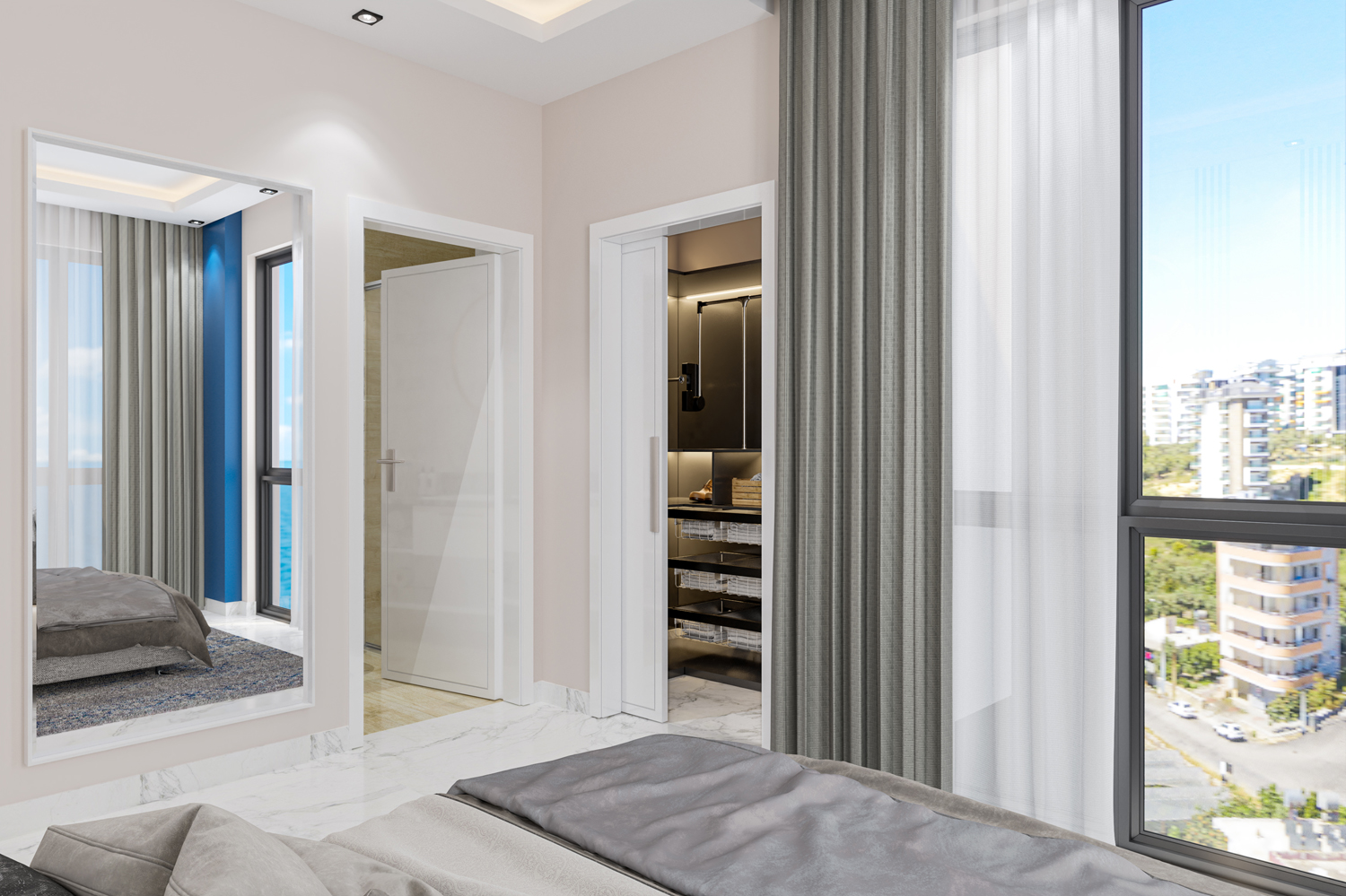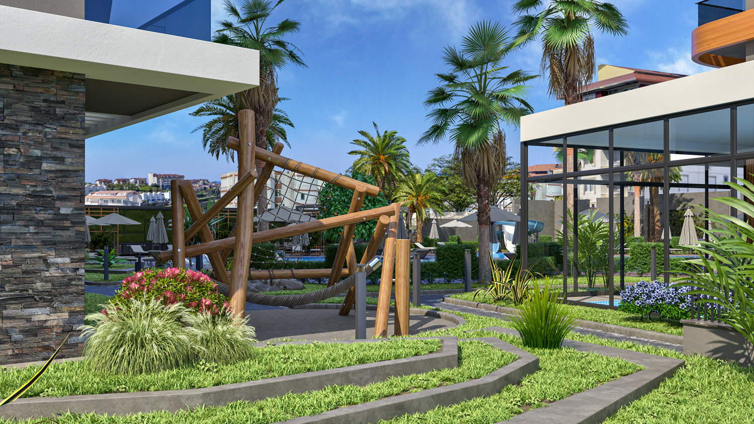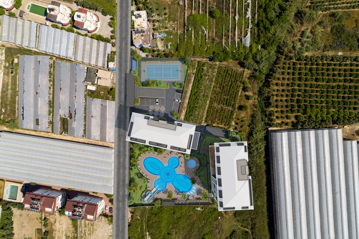 Konut, Alanya'nın önde gelen bir mimarlık firması tarafından tasarlanan modern tasarımıyla çeşitli düzenlerde 117 daire barındıran iki bloktan oluşmaktadır.