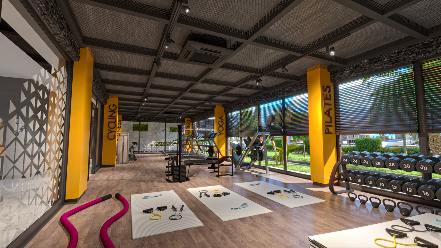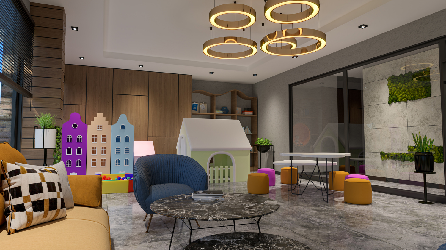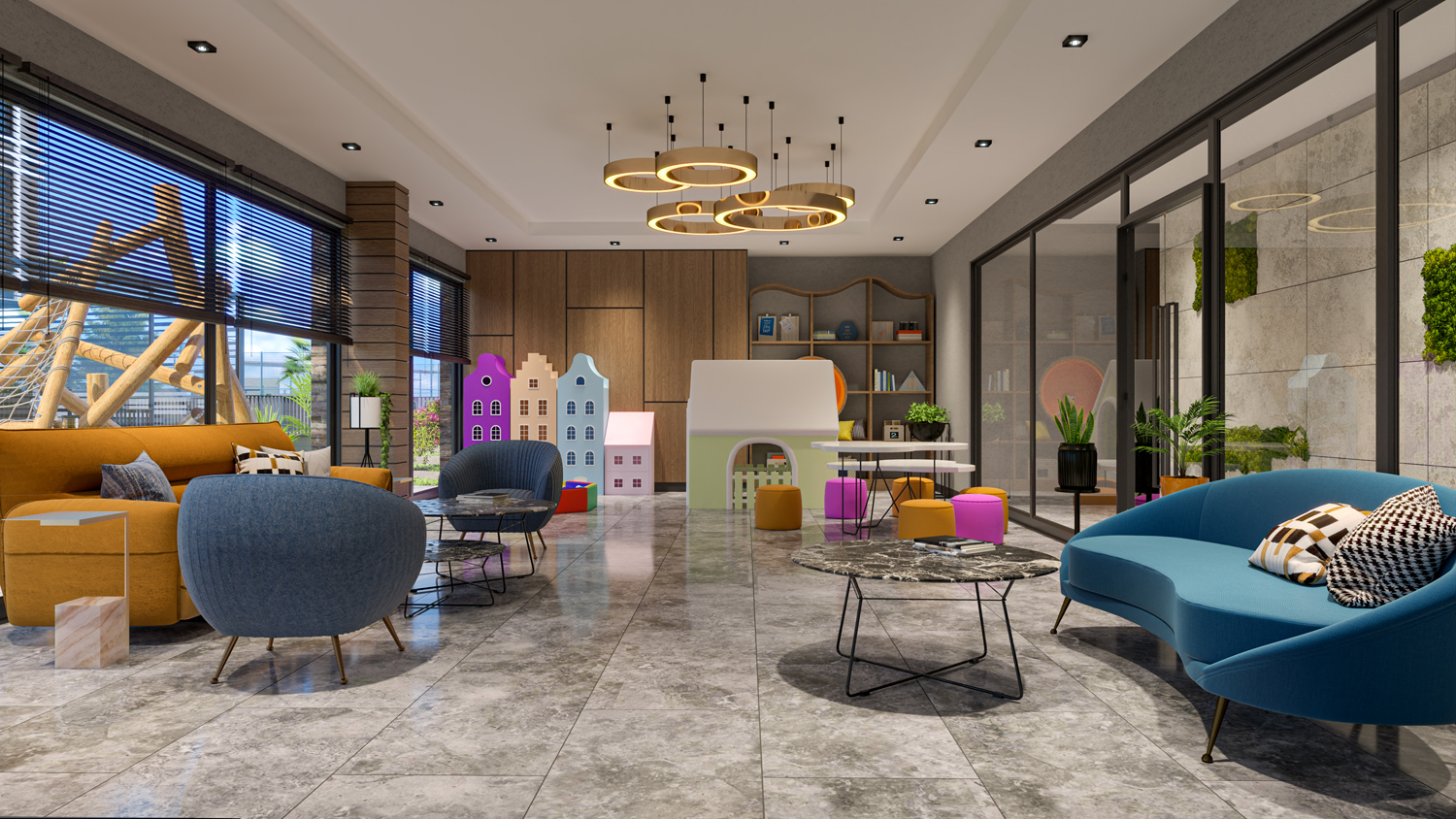 Rezidans içinde ayrıca oyun alanı, çocuk oyun odası, peyzajlı bahçe, açık ve kapalı otopark, kapıcı, asansör, elektrik jeneratörü, güvenlik kamera sistemi, uydu TV ve tenis kortu bulunmaktadır.
