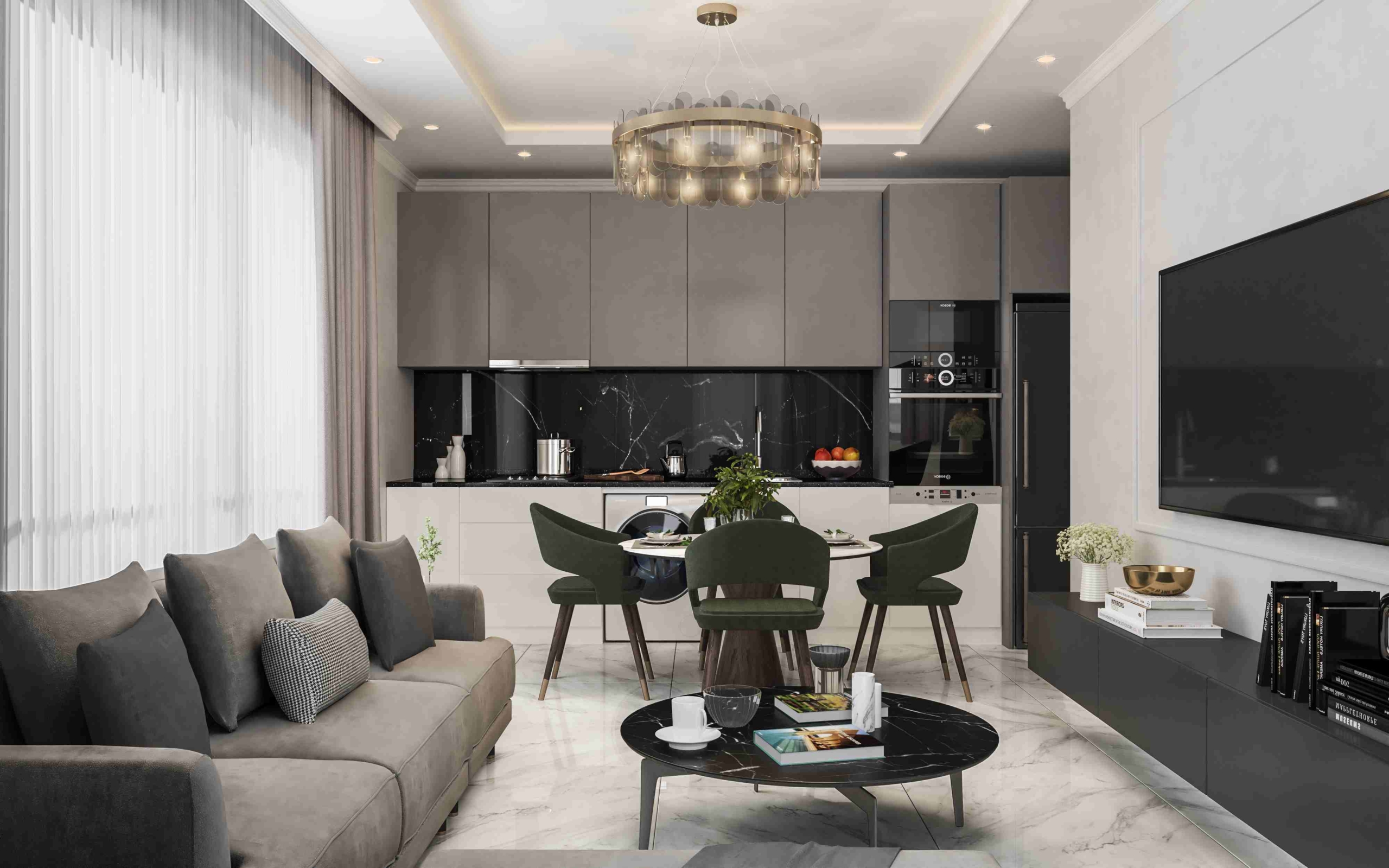 Tek yatak odalı dairenin alan büyüklüğü 44-45 m2'dir