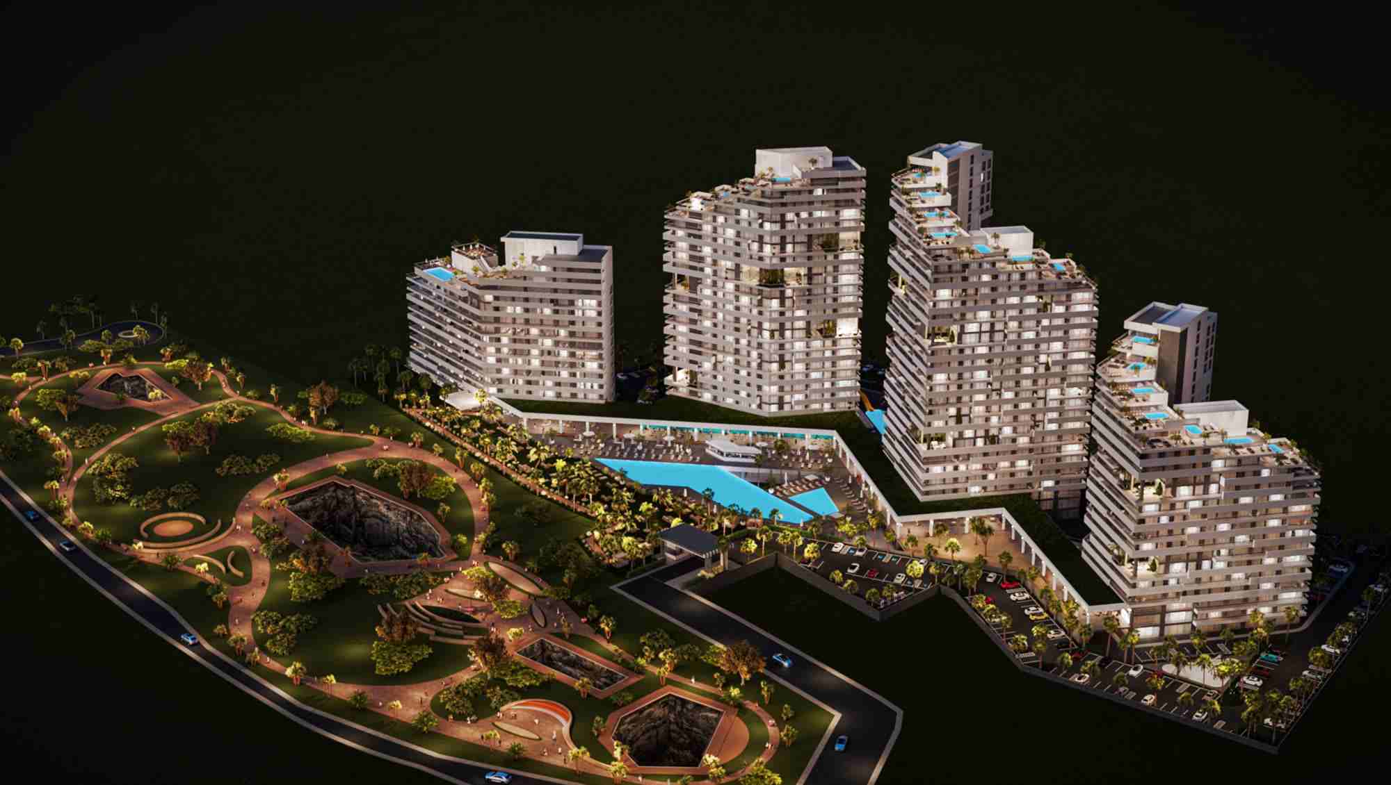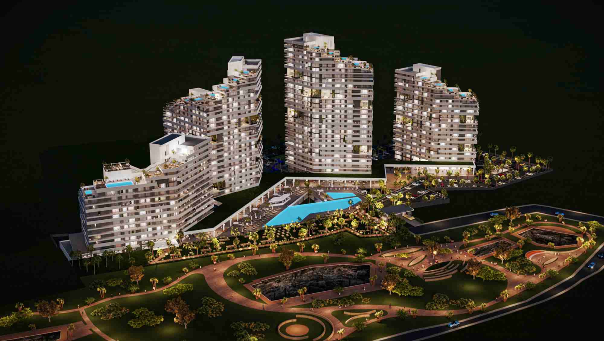 Projemiz dört farklı bloktan oluşuyor. Bir blok otel olarak hizmet verirken, diğer üç blok lüks rezidans dairelerden oluşuyor. Bu rezidanslar 9. kattan başlayıp orta bloklardaki teraslarla birlikte 28 kata kadar yükseliyor. Bu daireler size 365 gün boyunca lüks ve tatil tadında bir yaşam sunuyor. Ayrıca projenin tam karşısında yer alan 5 yıldızlı oteller, büyük bir casino ve kesintisiz sahil manzarası gibi özellikler bu projeyi yatırımcılar için cazip hale getiriyor.