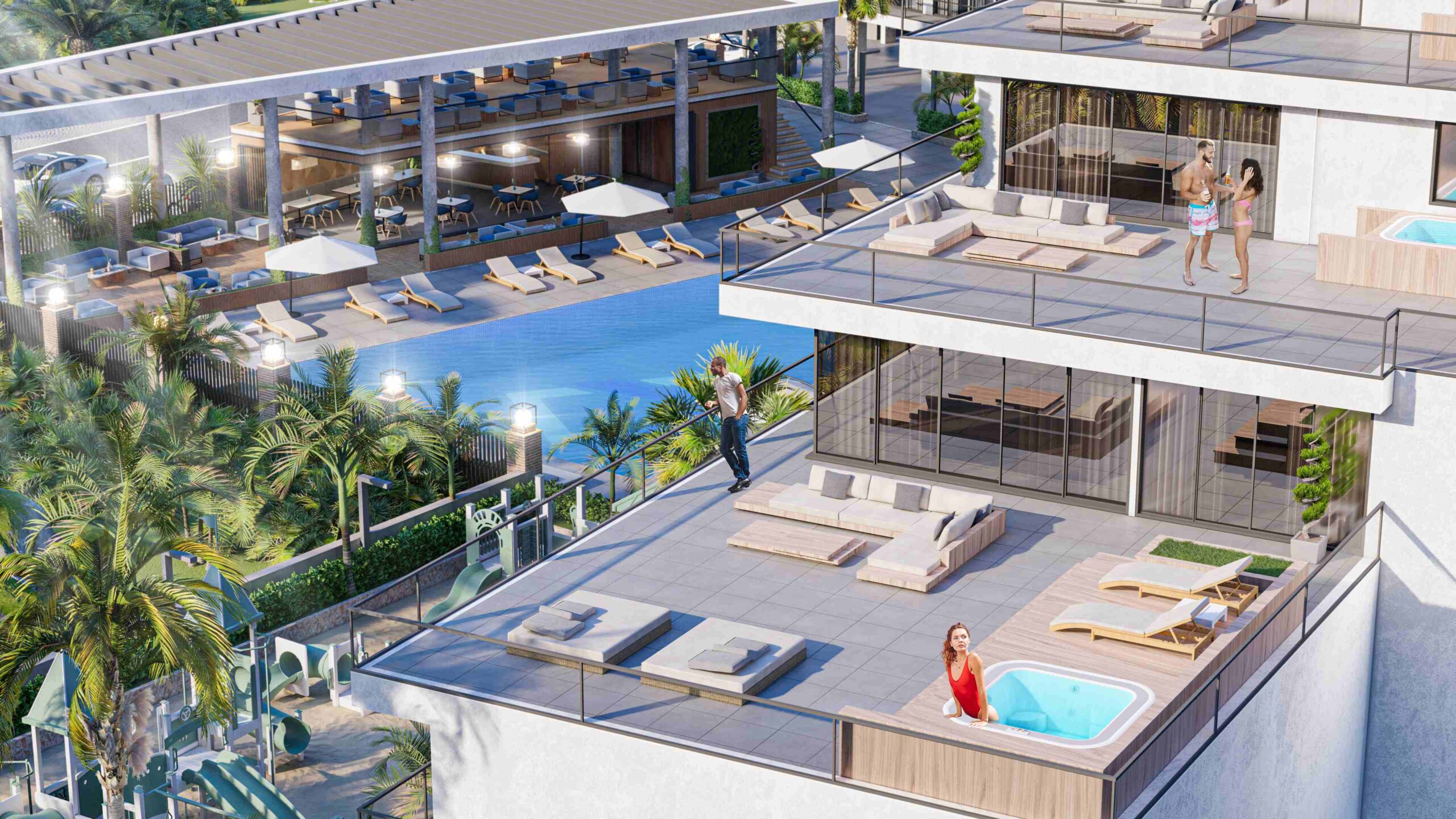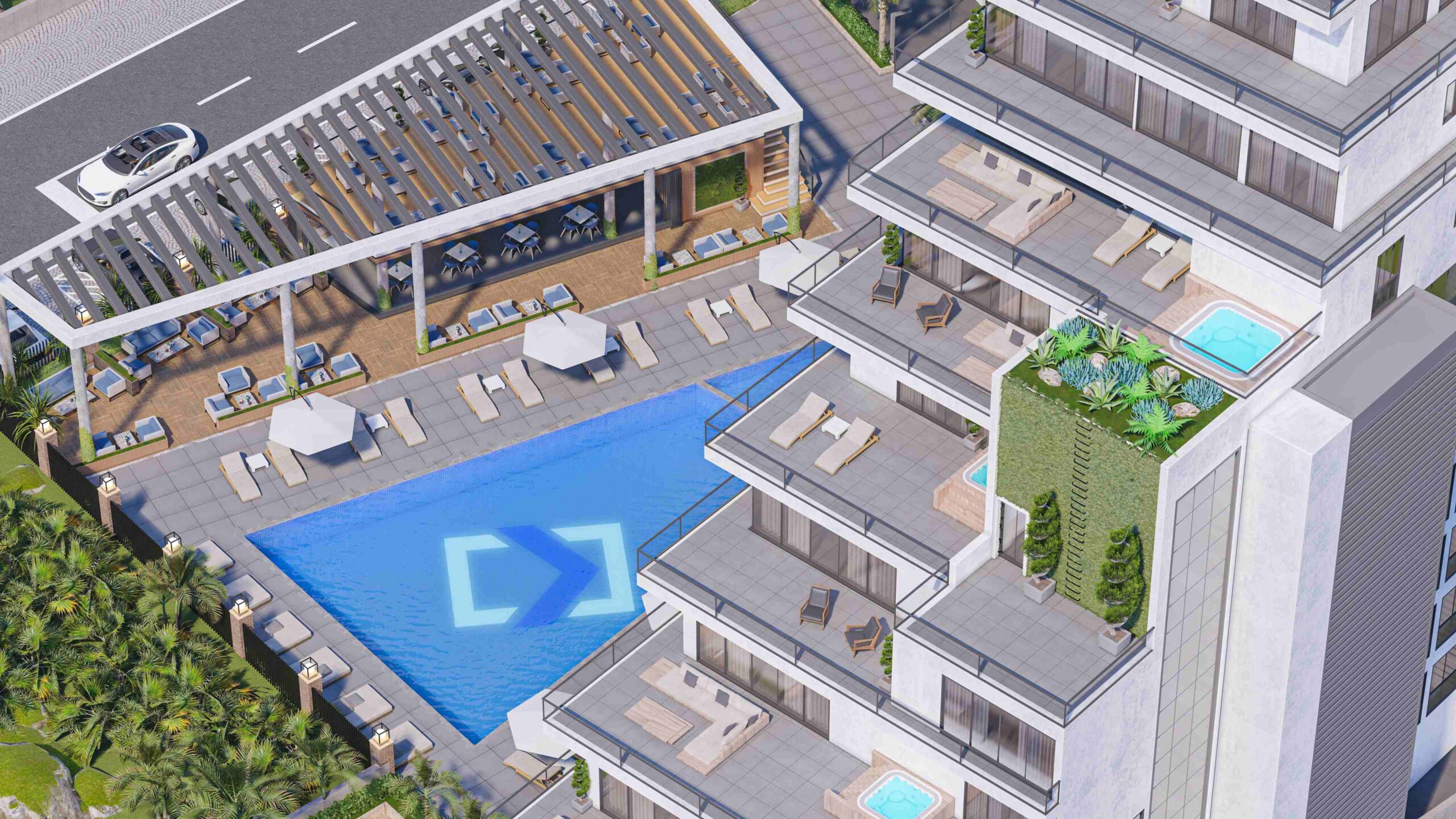 Bu iki bloklu, 13 katlı bina modern yaşamın tüm gereksinimlerini karşılamak üzere tasarlanmıştır. Zemin katta ortak havuz, restoran/kafe bar, lobi, spor salonu, fitness merkezi, oyun odası ve çok amaçlı salon yer alırken, çatı katında 360 derece panoramik manzaralı çatı bar/restoran ve sonsuzluk havuzu sizleri bekliyor. Bu proje, lüks ve yüksek kaliteli tatil evlerine gerçek bir rezidans konsepti getirerek benzersiz bir deneyim sunuyor.